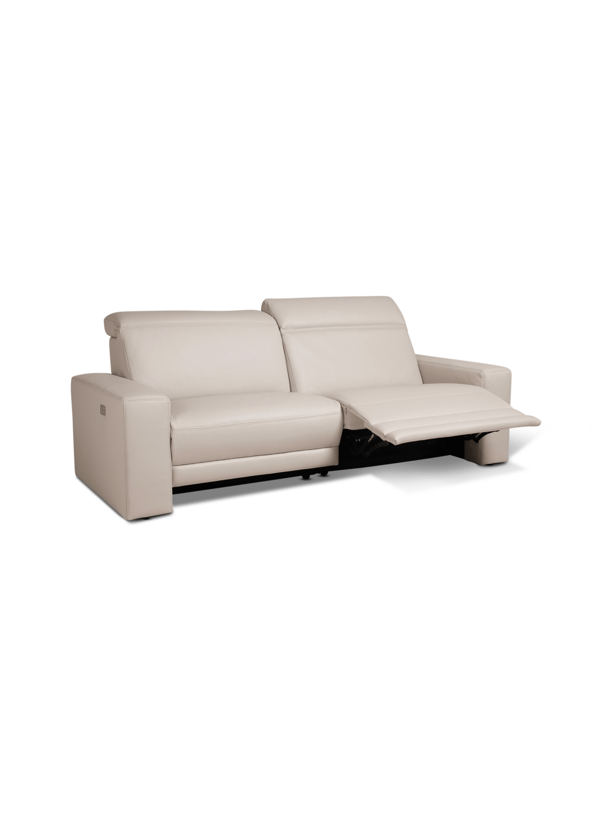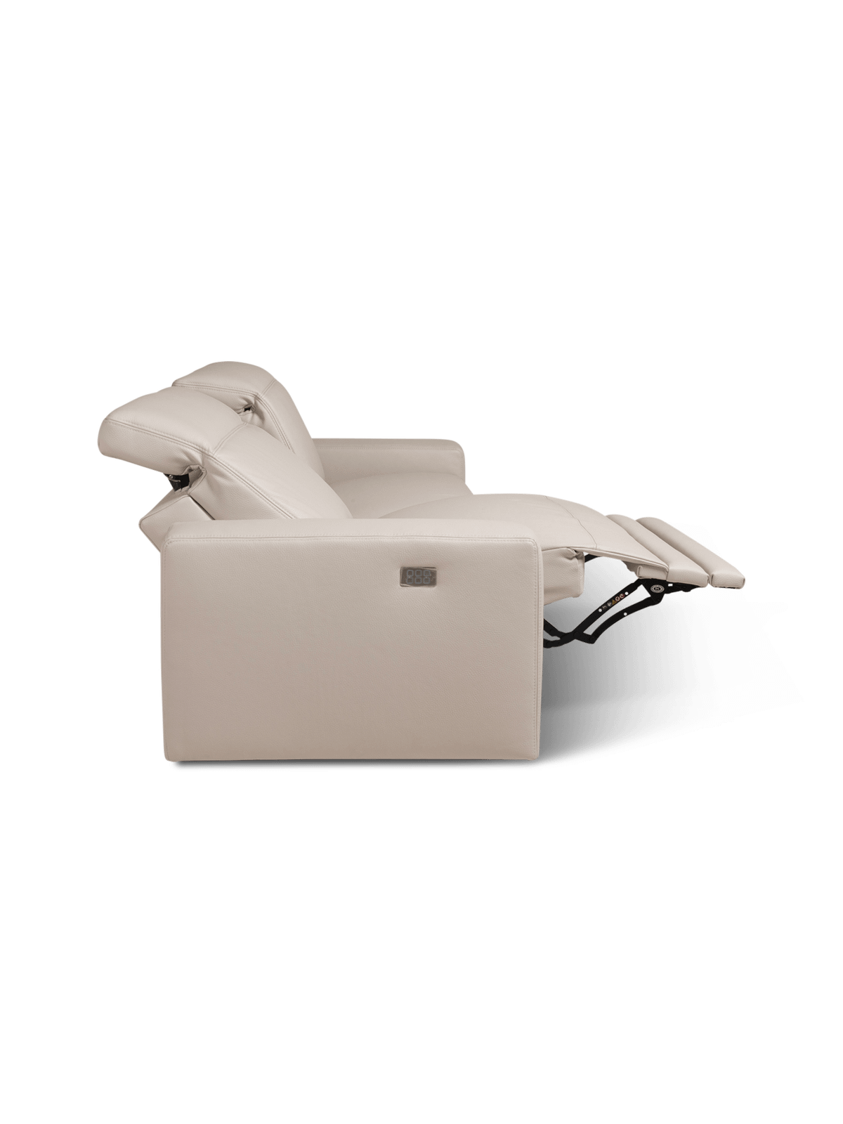Beide zitplaatsen zijn uitgerust met een geïntegreerde elektrische relaxfunctie. Met één eenvoudige bediening schuift de voetensteun naar voren en kantelt de rugleuning geleidelijk naar achteren, waardoor het lichaam volledig ondersteund wordt. Dit zorgt voor een natuurlijke ontspanningspositie waarbij drukpunten op rug en benen worden verminderd. De relaxmechaniek werkt vloeiend en stil, waardoor de overgang tussen zitten en ontspannen bijzonder comfortabel verloopt.