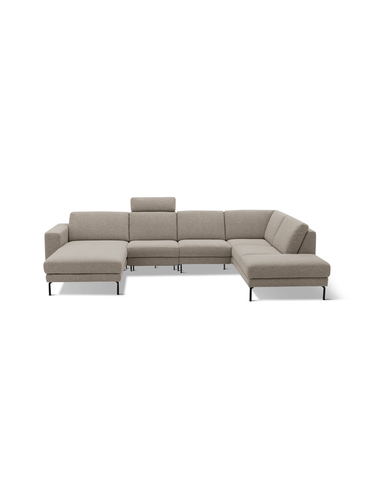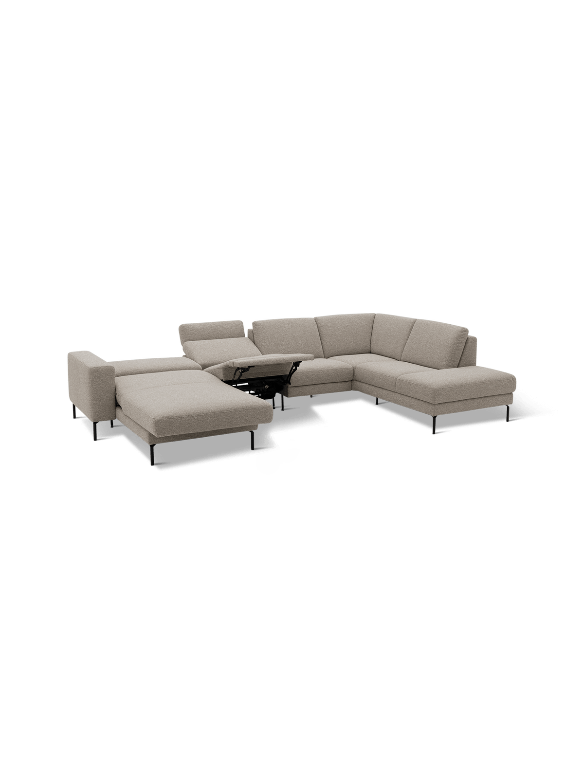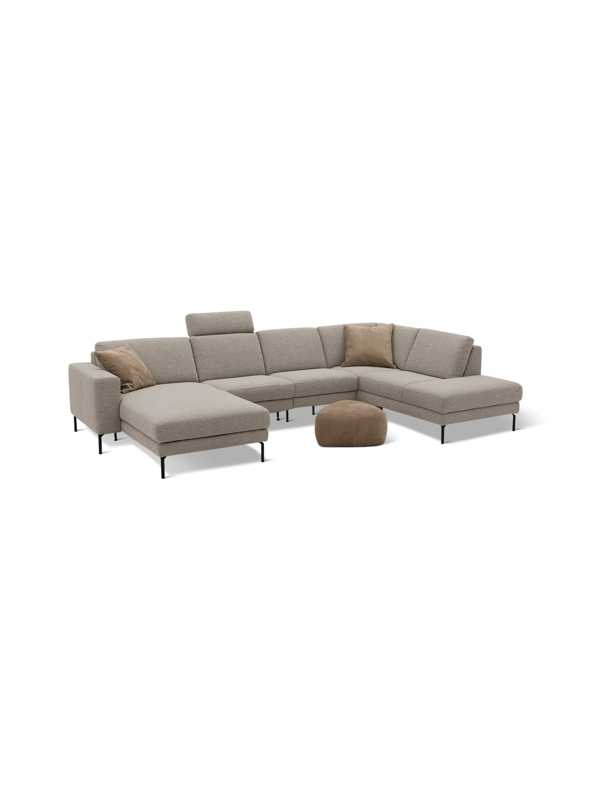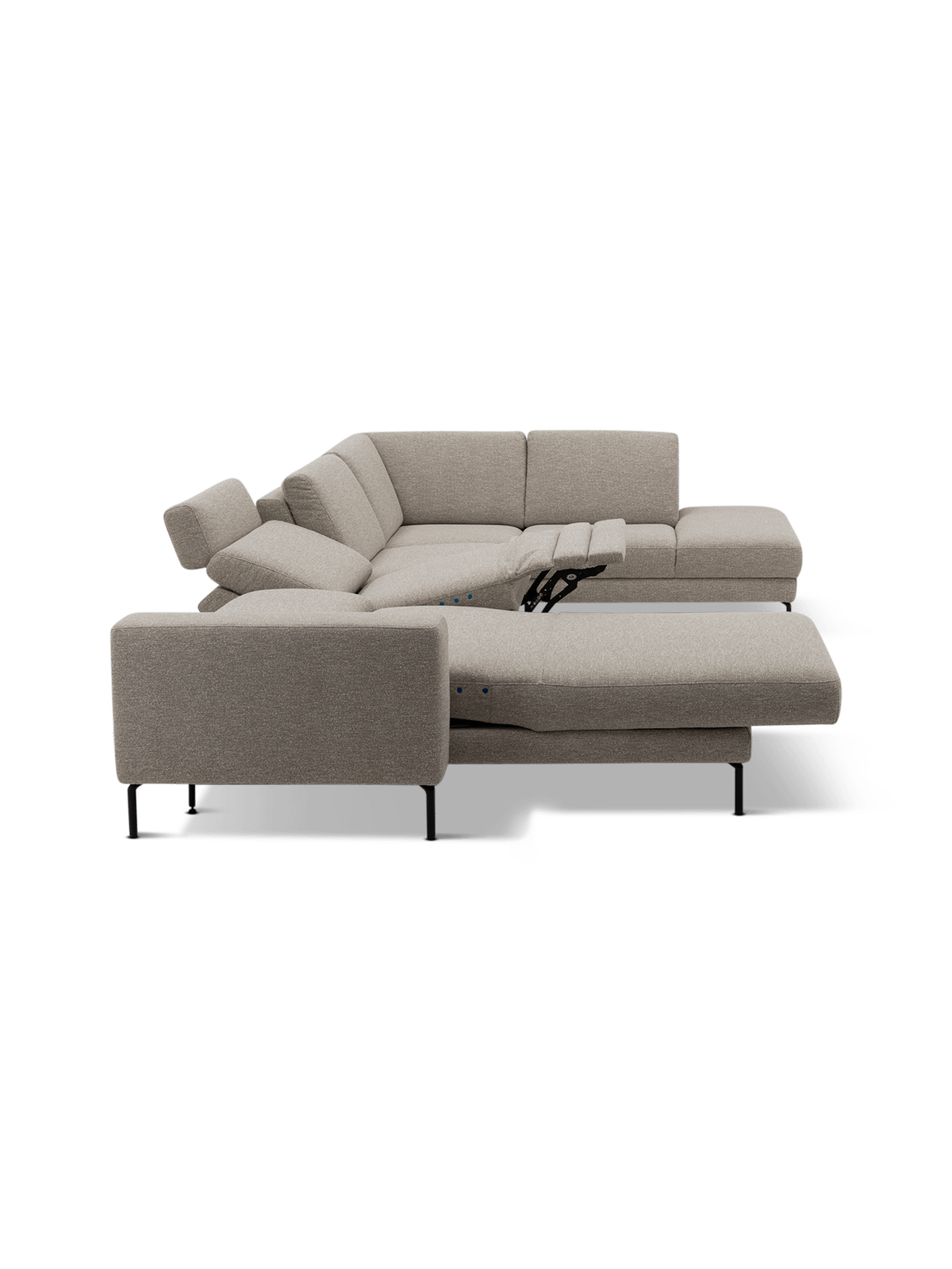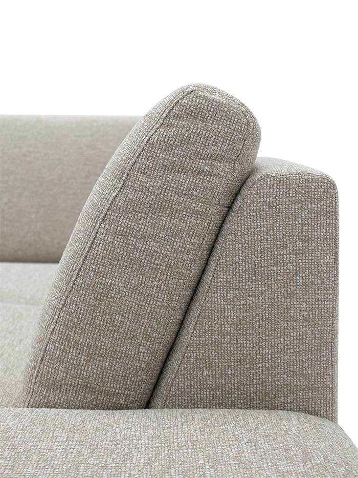 Het hoeksalon Halet combineert een tijdloos ontwerp met een uitzonderlijk zitcomfort. De zachte, neutrale bekleding en de verstelbare hoofdsteunen zorgen voor een uitnodigende en ergonomische zithouding. Dankzij de ruime afmetingen is dit salon ideaal voor gezellige avonden of ontspannen momenten met het hele gezin.