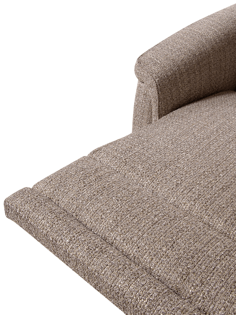 De zetel is bekleed met een warme bruine geweven stof die zorgt voor een gezellige en uitnodigende uitstraling. Dankzij de zachte structuur en duurzame kwaliteit voelt de bekleding aangenaam aan en blijft ze ook bij intensief gebruik mooi. Het klassieke model en de verfijnde afwerking maken van deze zetel een stijlvolle en tijdloze toevoeging aan de woonkamer.