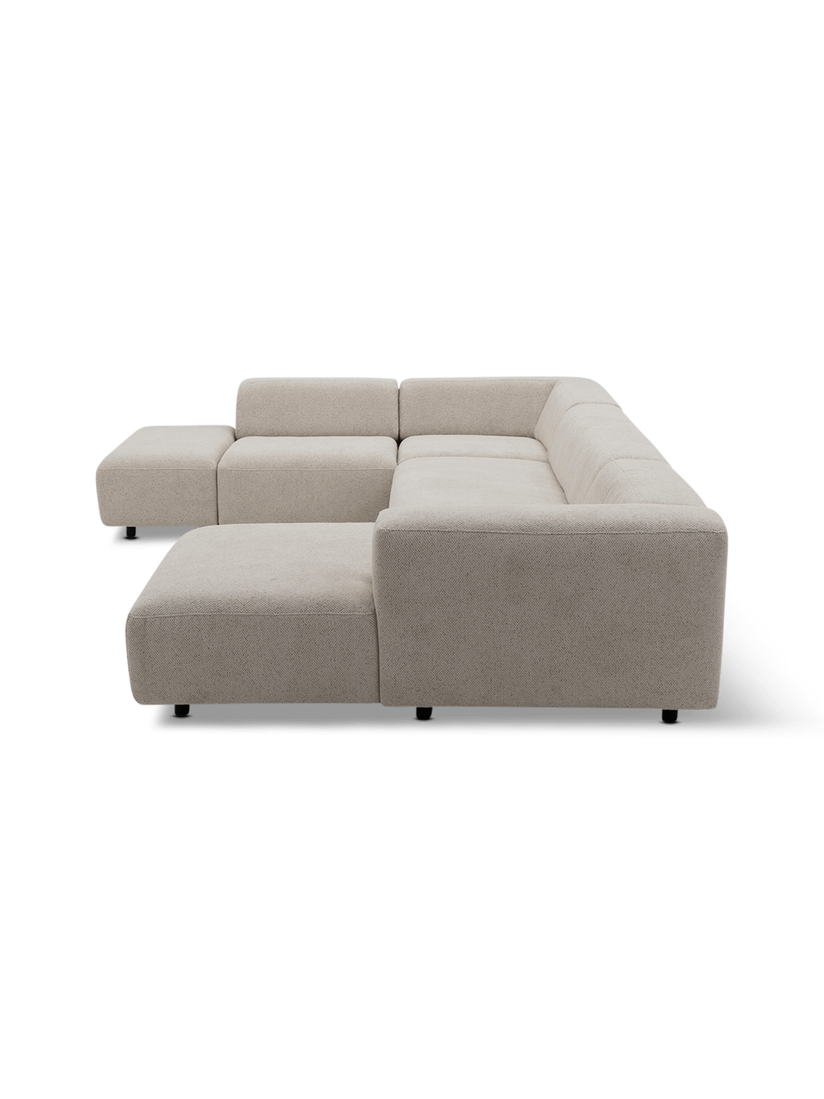 - Opstelling: hoek links en longchair rechts