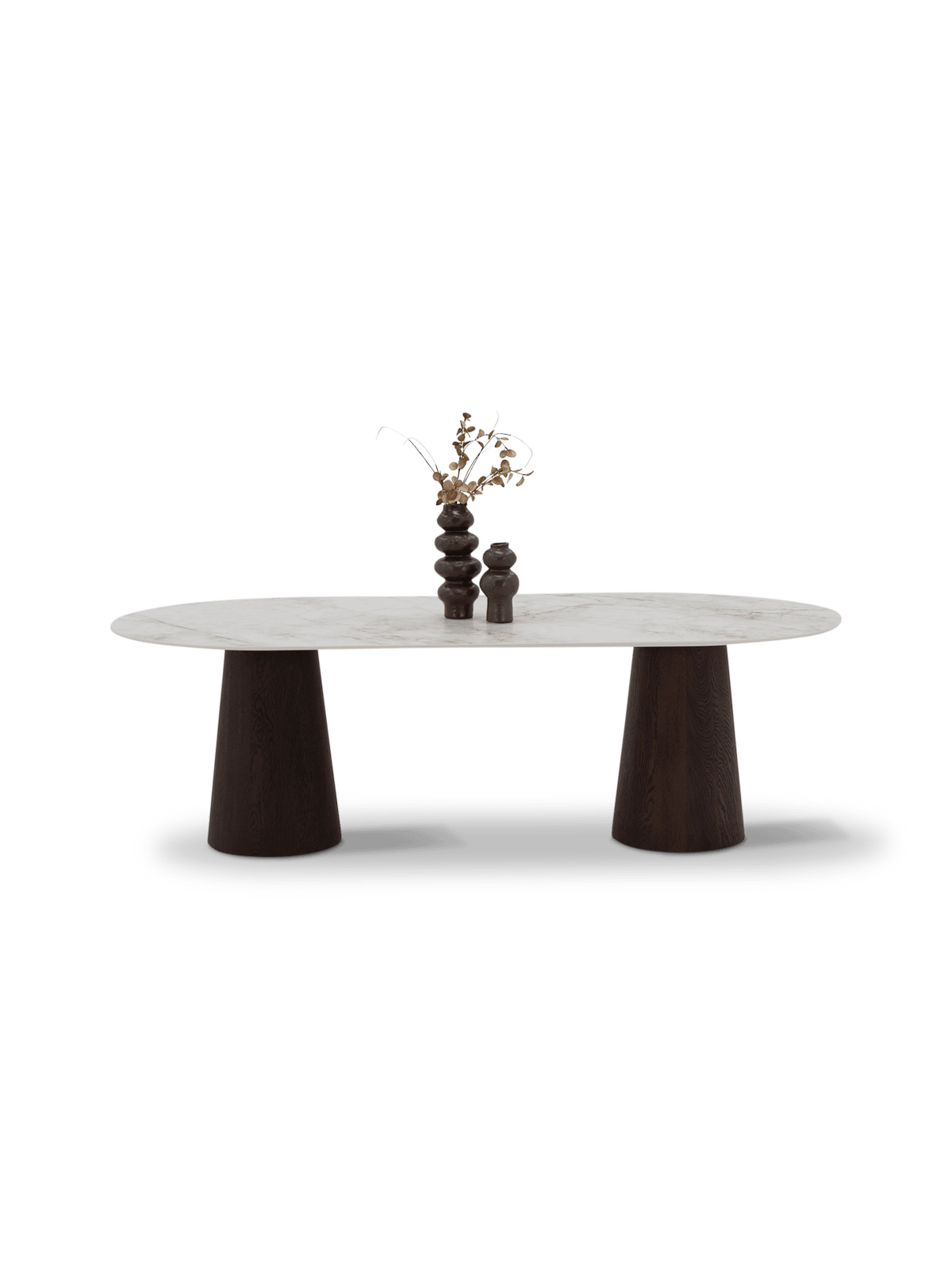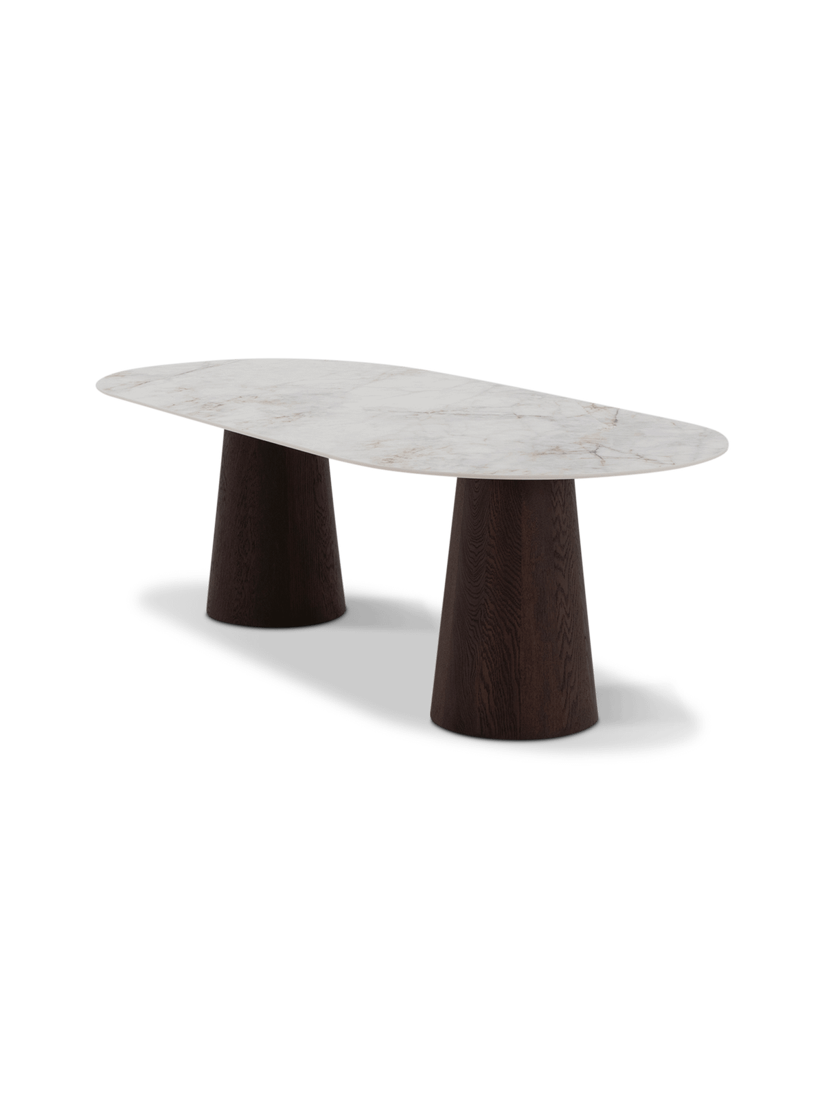 De poten in eikenhout met walnoot afwerking geven Lyon dat extra beetje diepte en warmte. De zachte, conische vorm zorgt voor een stabiele basis en een elegante look. Daardoor oogt de tafel stevig, maar toch luchtig in de ruimte.