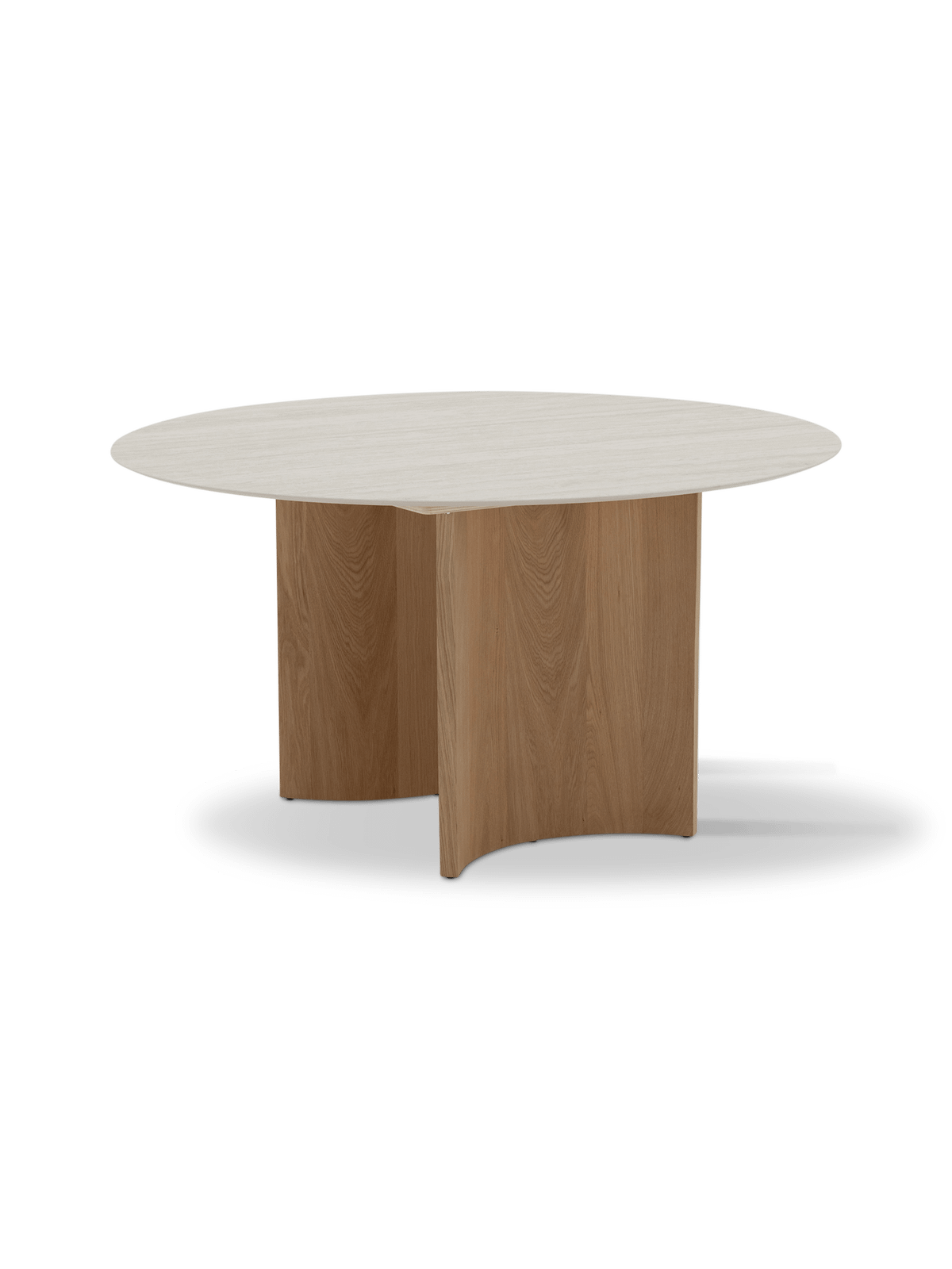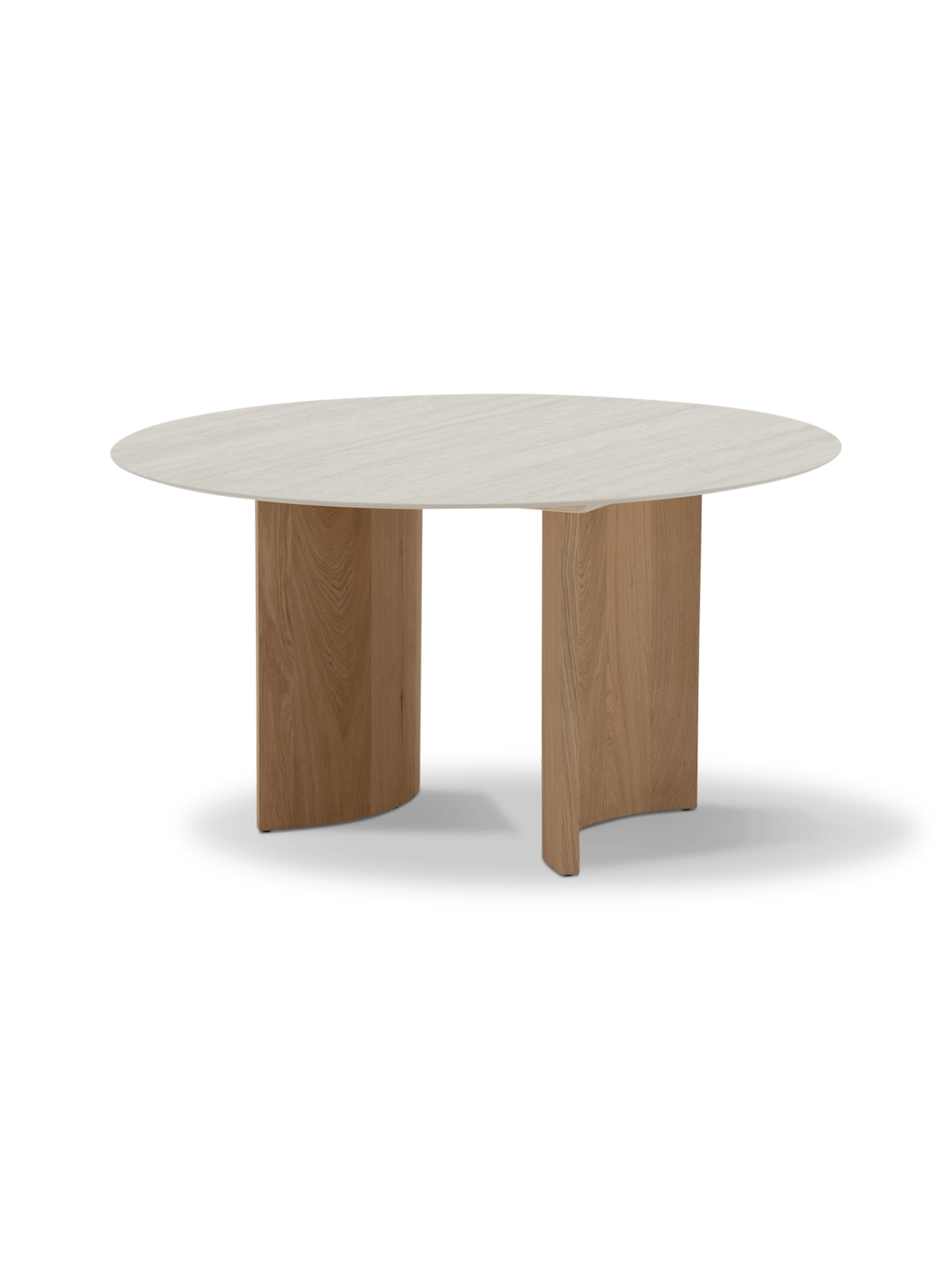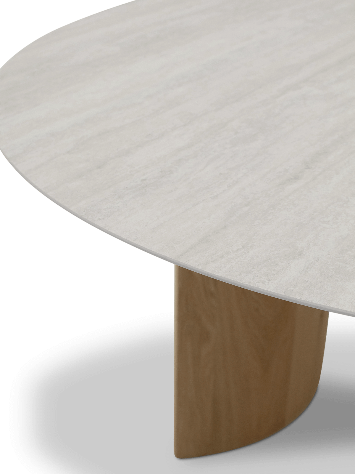 De afgeronde vormen van het travertijnen blad en de gebogen eiken poten versterken elkaar in een uitgebalanceerd geheel. Deze tafel past moeiteloos in moderne, natuurlijke of Japandi-interieurs — en geeft elke ruimte een serene, verfijnde uitstraling.