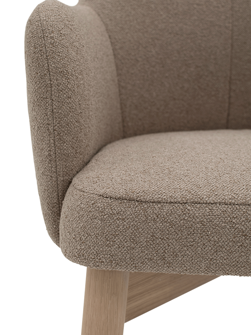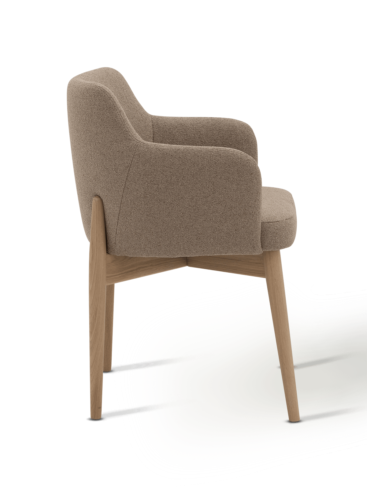 De armstoel Rhone combineert een tijdloos design met hedendaags comfort. De zachte taupekleurige stoffering zorgt voor een warme en uitnodigende look, waardoor deze stoel perfect past in zowel moderne als landelijke interieurs. De afgeronde vormen en subtiele lijnen geven de stoel een elegante uitstraling die moeiteloos opgaat in elke eetkamer of zithoek.