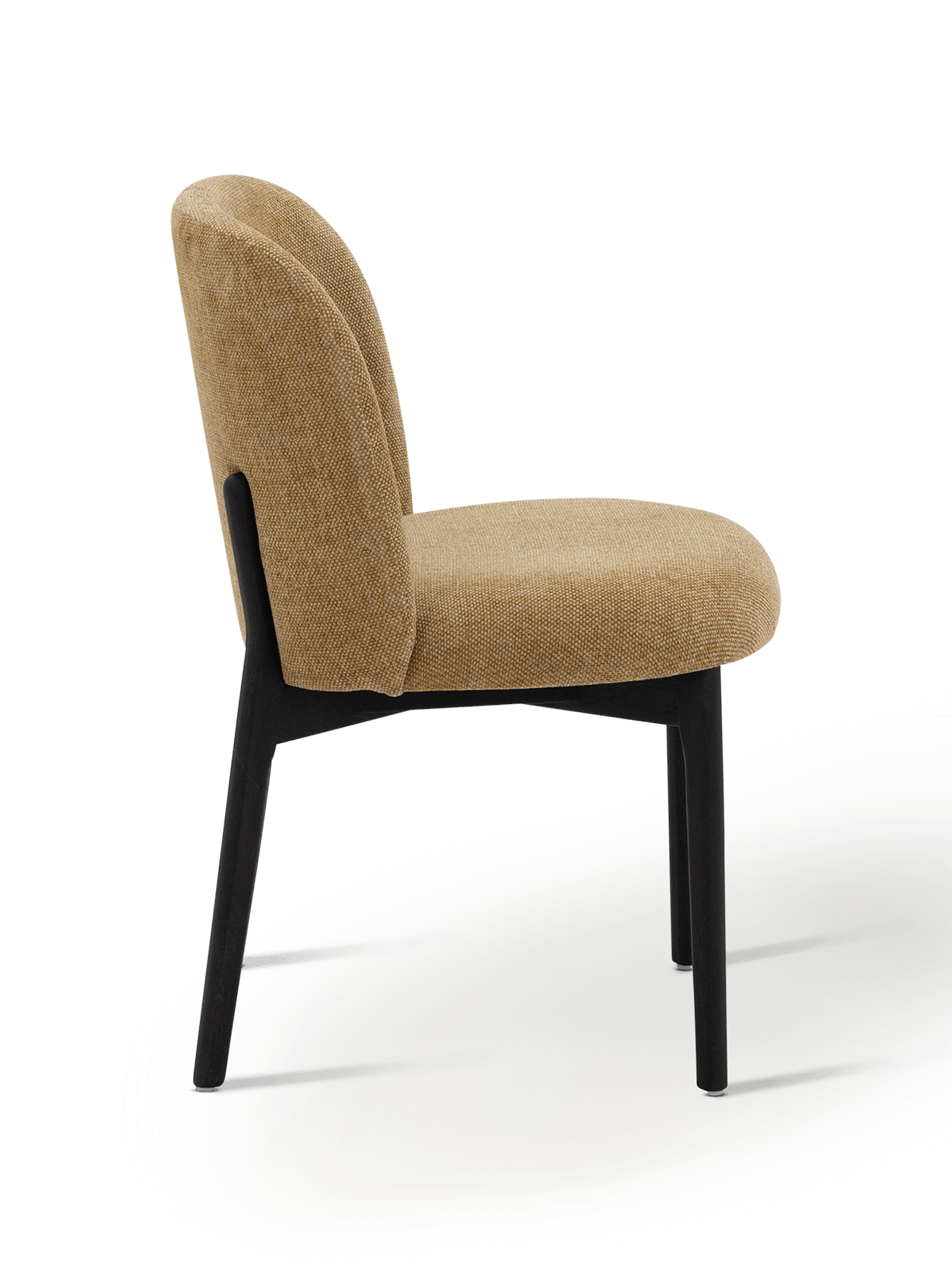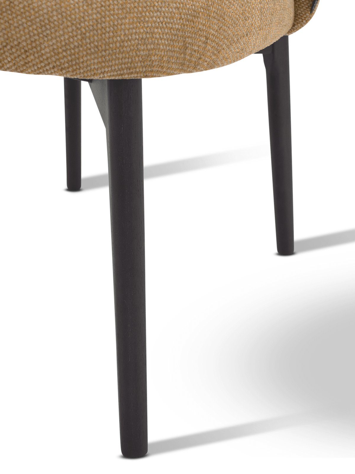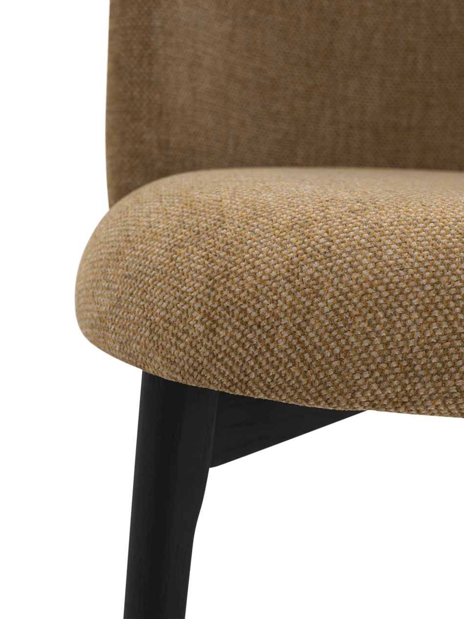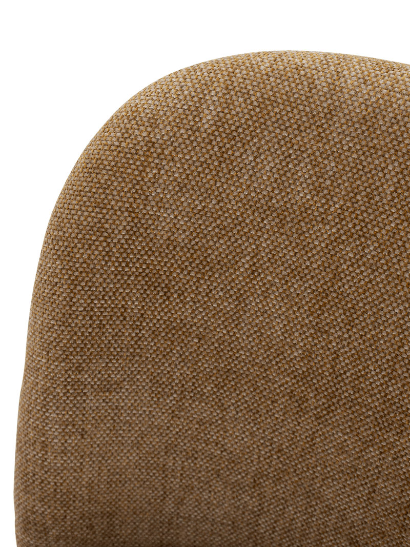 De luxueus geweven stof Impala in een diepe mustardkleur geeft de stoel een karaktervolle uitstraling. De subtiele textuur van de stof zorgt voor diepte en zachtheid, terwijl de warme tint een stijlvol accent toevoegt aan de eettafel of zithoek.