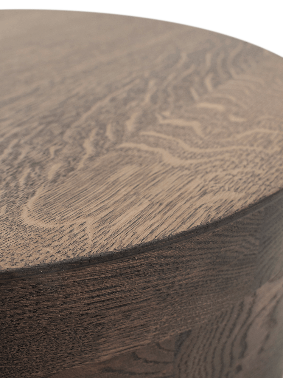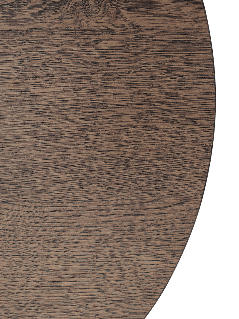 Ook deze bijzettafel is afgewerkt met een hoogwaardige eiken fineerlaag in een warm, donker gerookte kleur. De rijke houtstructuur en subtiele kleurnuances geven de tafel een luxueuze uitstraling en zorgen voor een mooi samenspel met andere natuurlijke materialen.