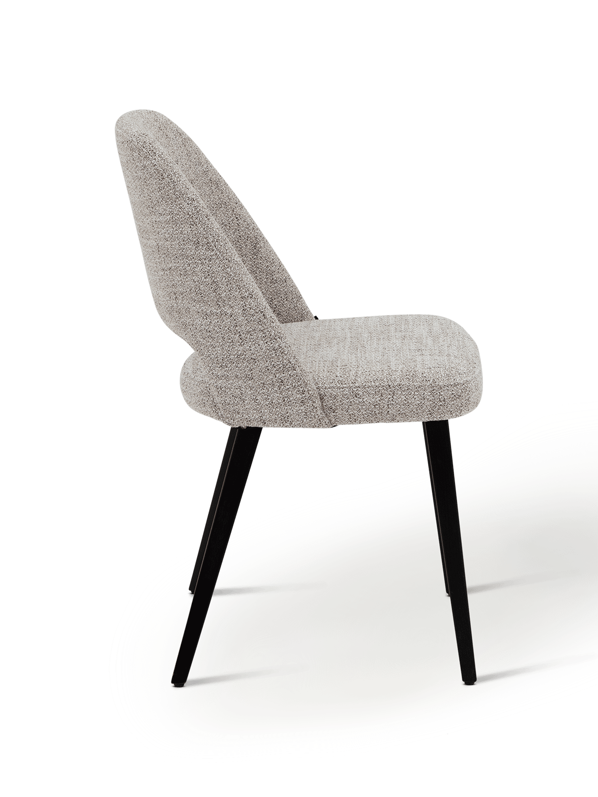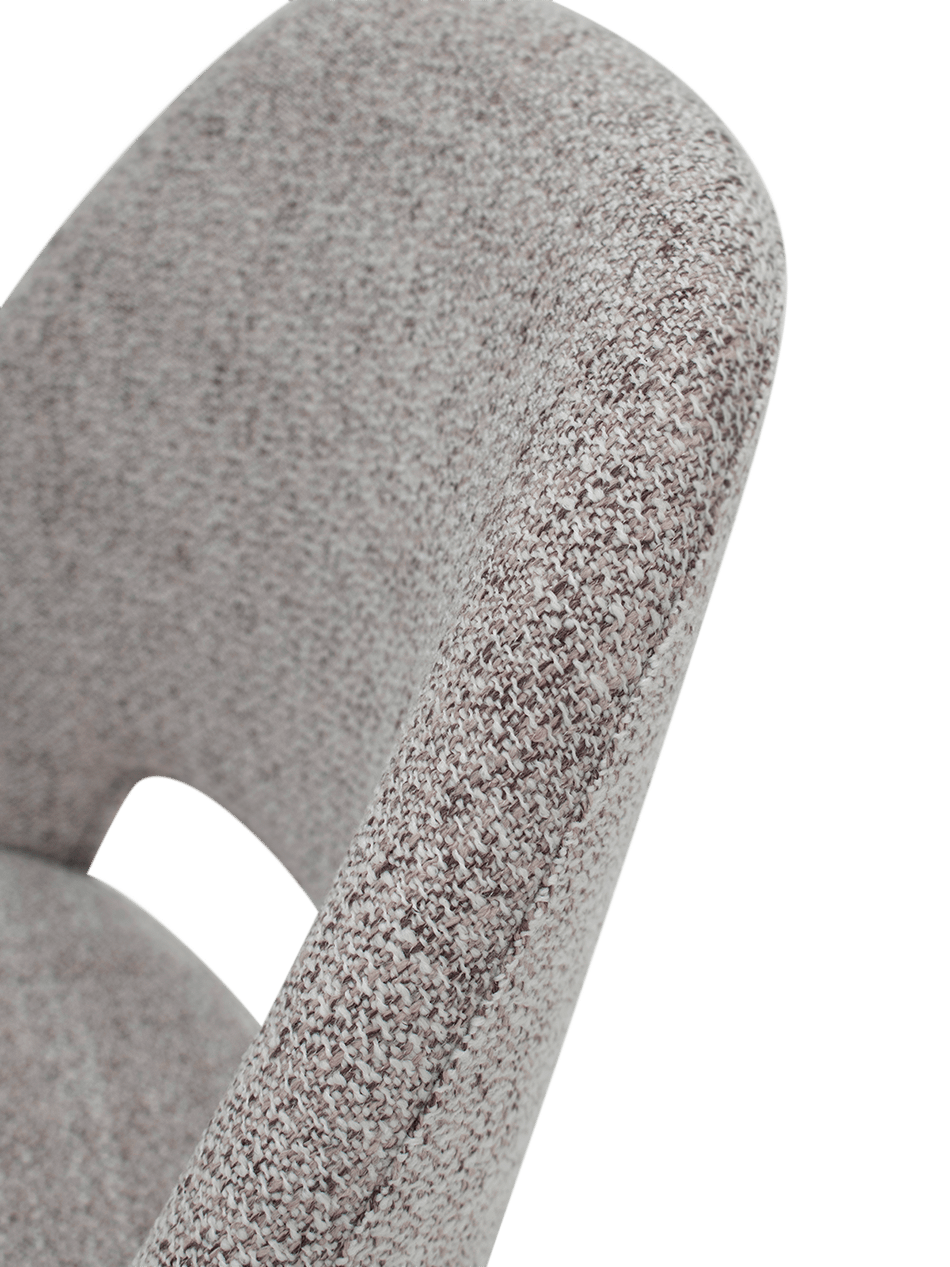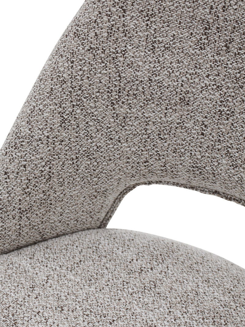 De stof oasis.91 bisque heeft een aangename, cosy textuur en een lichte, neutrale kleur die je interieur rustig houdt. Dit is zo’n tint die moeiteloos combineert met hout, keramiek, natuursteen of zwarte accenten. Daardoor is Ray een heel makkelijke stoel om te mixen met verschillende tafels en stijlen, van modern tot hedendaags landelijk.