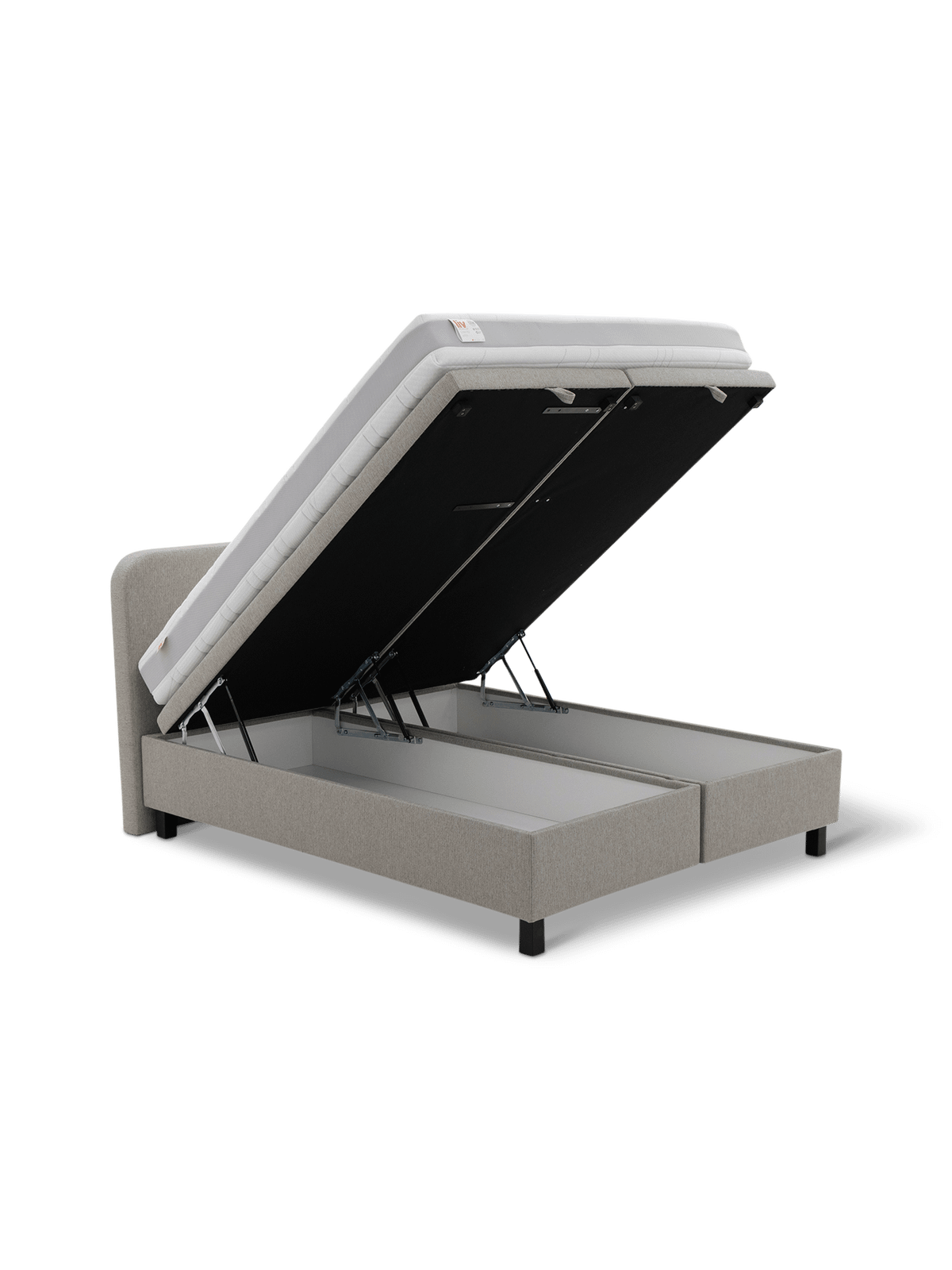 De Storage set van LIV by Revor combineert een strak, tijdloos design met extra functionaliteit. Dankzij de geïntegreerde opbergruimte in de boxen benut je elke centimeter optimaal, zonder in te boeten op slaapcomfort of uitstraling.