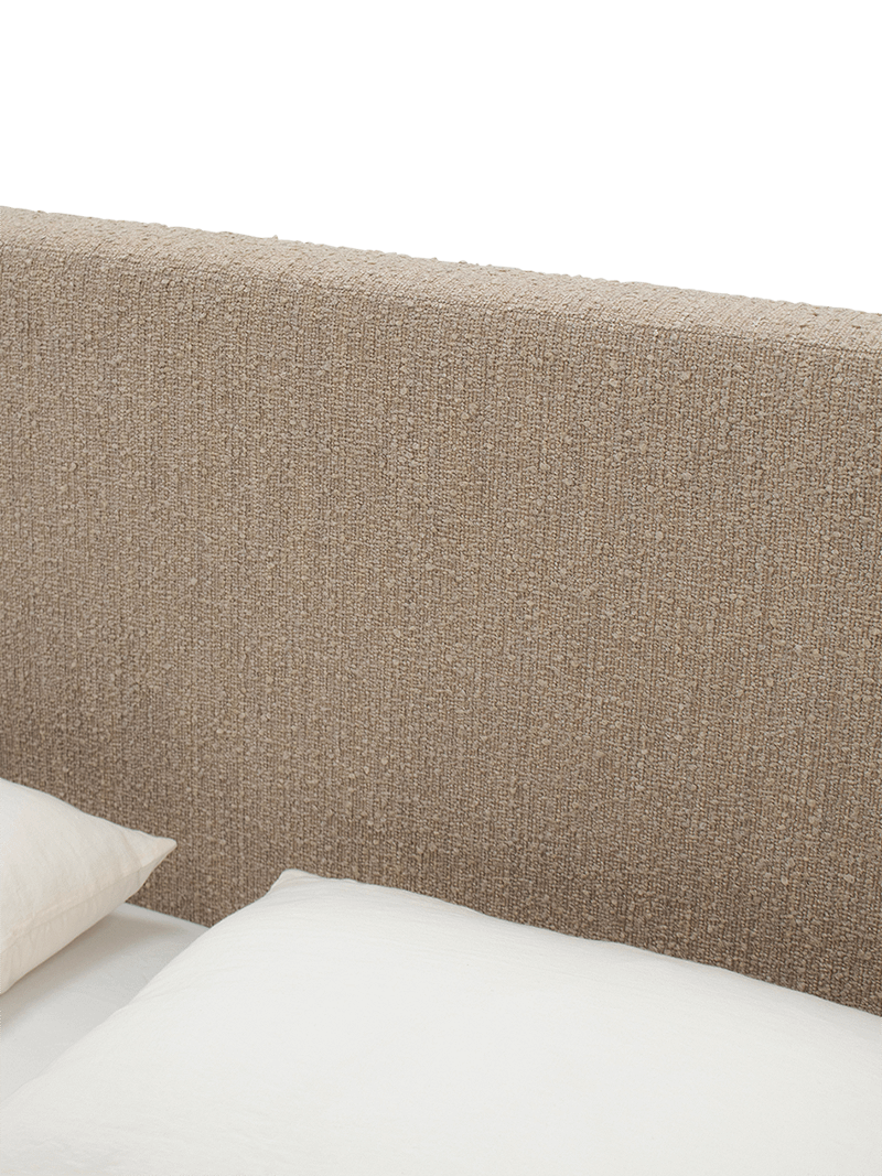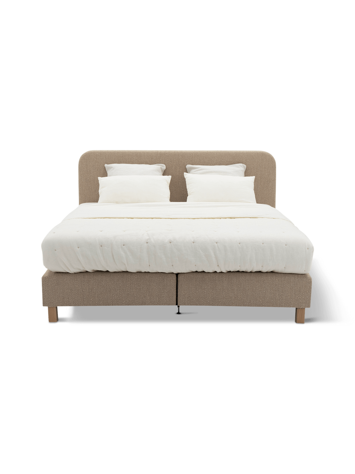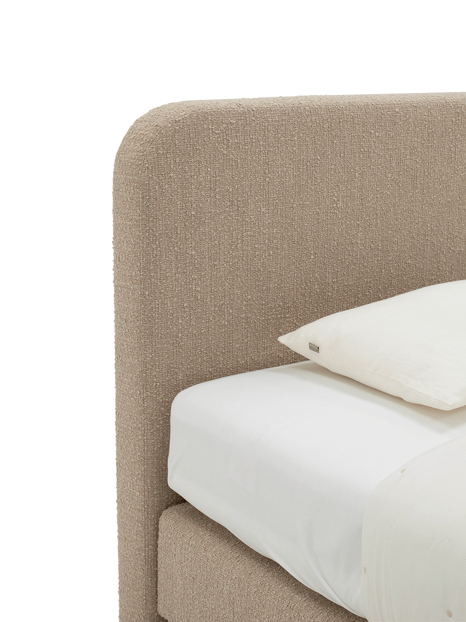 De boxspringset Luna van LIV by Revor straalt rust, comfort en verfijning uit. De zachte vormen, het uitnodigende hoofdbord en de lichte Cocoon White-stof creëren een serene sfeer waarin ontspanning centraal staat. Dit is een bed dat niet domineert, maar harmonie brengt in de ruimte.