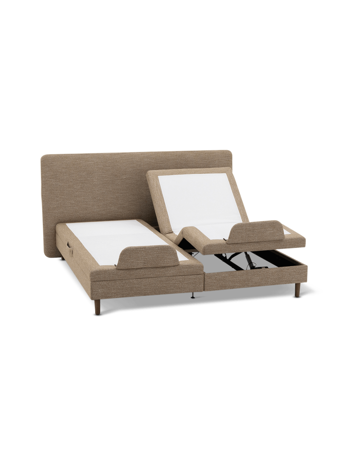 Met het elektrisch verstelbare 4-kniksysteem pas je rug en benen nauwkeurig aan. Zo zit je comfortabel rechtop, lig je lichtjes verhoogd voor extra ontlasting, of kies je een relaxstand die je spieren helpt ontspannen. Alles gebeurt soepel en stil, via een draadloze afstandsbediening die je altijd bij de hand houdt.