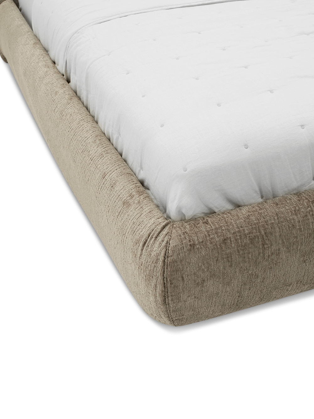 Het bedkader Italy van Liv by Revor belichaamt pure zachtheid en ingetogen luxe. De verfijnde vormgeving wordt versterkt door een rijke fluwelen bekleding die het bed een warme, elegante uitstraling geeft. De subtiele glans van de stof vangt het licht op een natuurlijke manier en zorgt voor een uitnodigende sfeer in de slaapkamer.