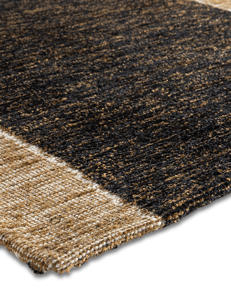 Het tapijt Boho Stripes combineert een minimalistisch lijnenspel met warme, natuurlijke tinten voor een stijlvol en evenwichtig geheel. De brede strepen in beige, bruin en zwart zorgen voor een krachtig visueel effect zonder te overheersen, waardoor dit tapijt perfect past in zowel moderne als industriële interieurs. Ideaal om je zithoek te definiëren en tegelijkertijd extra gezelligheid en textuur toe te voegen aan je ruimte.