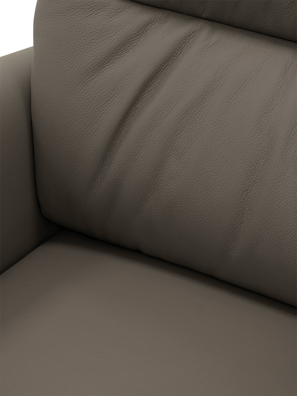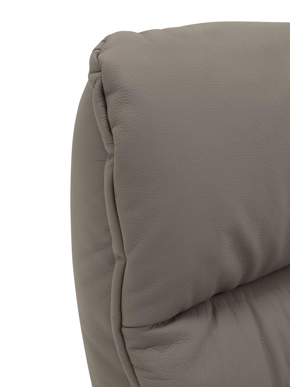 De traploos verstelbare hoofdsteun en de hoogwaardige koudschuimvulling zorgen voor langdurige ondersteuning van rug, nek en schouders. De beklede armleuningen bieden extra zachtheid, terwijl de subtiele, tijdloze belijning van het design past in zowel moderne als klassieke interieurs.