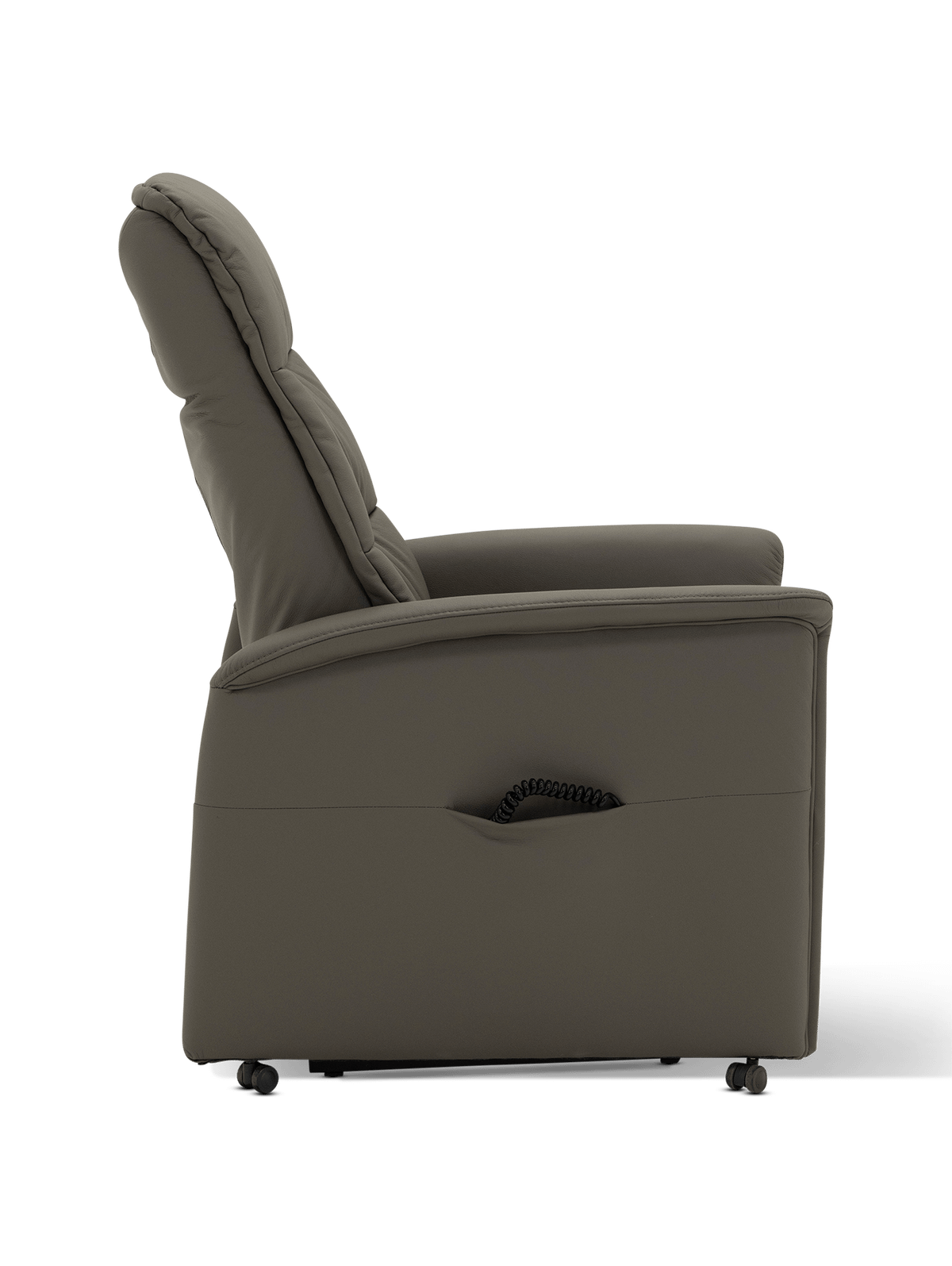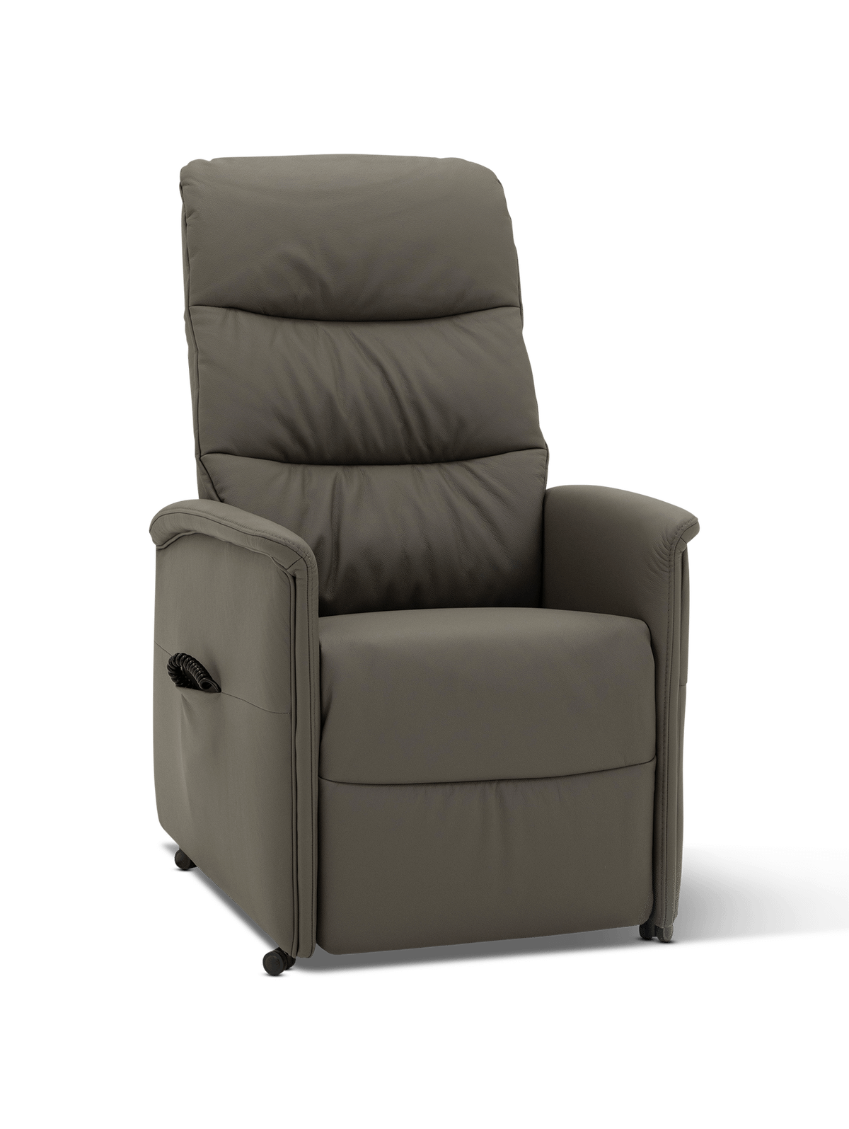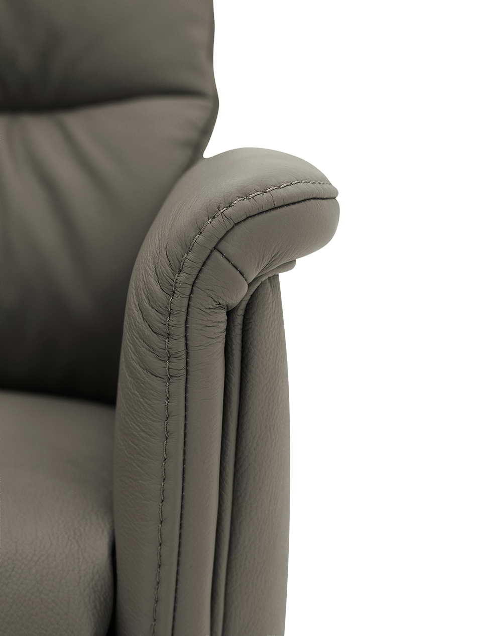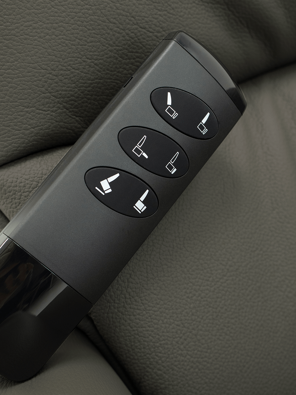 De afstandbediening ligt perfect in de hand en kan netjes worden opgeborgen in het zijvak van de fauteuil. Zo blijft alles binnen handbereik zonder in te boeten aan stijl.