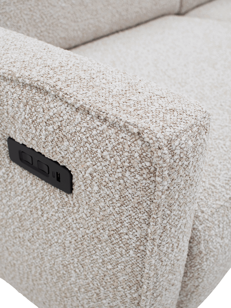 De Willa combineert comfort met moderne technologie. Met één druk op de knop verstel je de relaxfunctie elektrisch, terwijl een USB-aansluiting handig geïntegreerd is in de armleuning zodat je apparaten altijd binnen handbereik kunt opladen. De hoogwaardige motor werkt stil en soepel, wat het gebruik extra aangenaam maakt.
