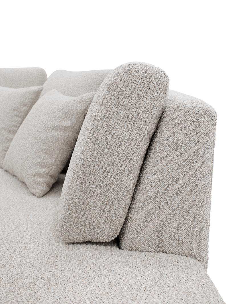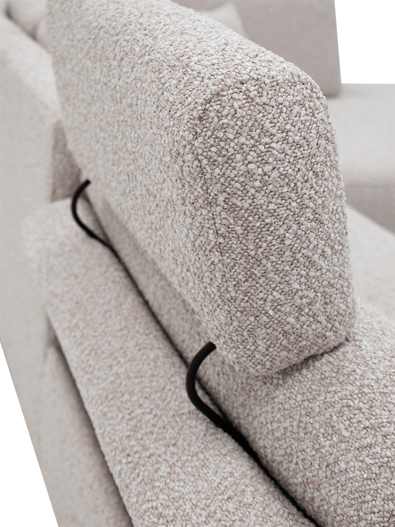 De Willa hoeksalon is een toonbeeld van modern comfort. De uitnodigende zittingen, afgeronde vormen en zachte bekleding in stof Yukon Greige creëren een warme, eigentijdse sfeer. Dankzij het verfijnde ontwerp met verstelbare hoofdsteunen geniet je altijd van de perfecte ondersteuning – of je nu zit, leest of languit ontspant.