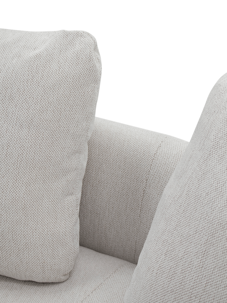 De rijk geweven stof in beige heeft een prachtige textuur die het geheel een verfijnde uitstraling geeft. De stof voelt zacht aan en straalt kwaliteit uit, passend bij de hoogwaardige afwerking waar Olta om bekendstaat.