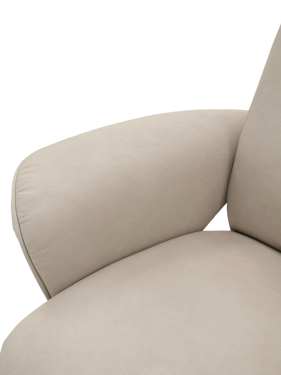 De stevige metalen stervoet geeft de fauteuil een moderne uitstraling en zorgt voor een stabiele basis met 360° draaifunctie. Dankzij de tijdloze afwerking past de Noran M moeiteloos in elk interieur, van hedendaags tot klassiek.