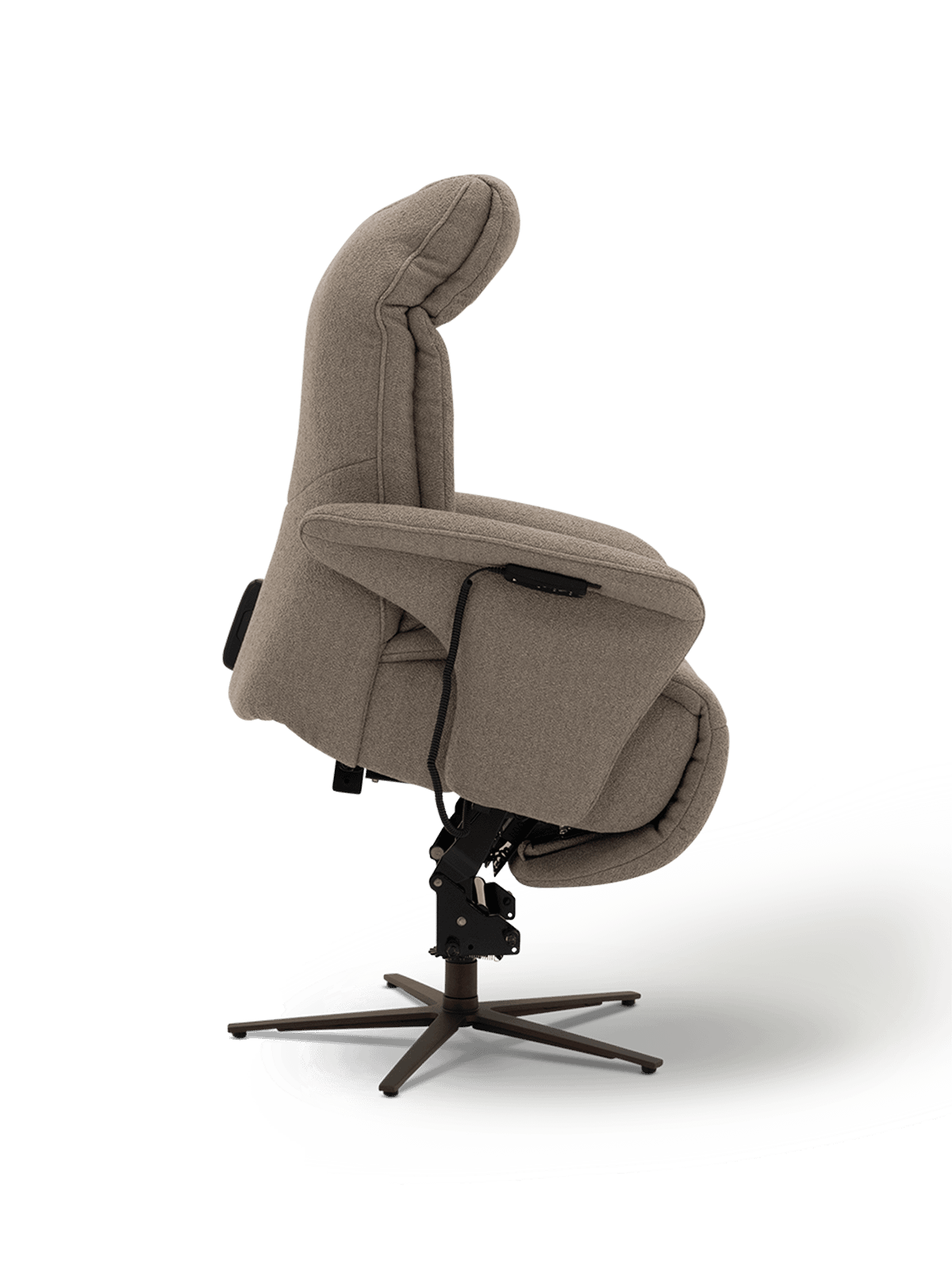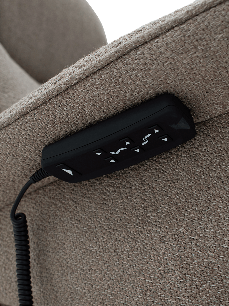 De twee motoren laten toe om de rugleuning en de voetensteun onafhankelijk van elkaar te verstellen. Zo kies je moeiteloos de perfecte positie voor elk moment — van een rechte leesstand tot een volledig liggende rusthouding. De bediening verloopt eenvoudig via de geïntegreerde afstandsbediening.