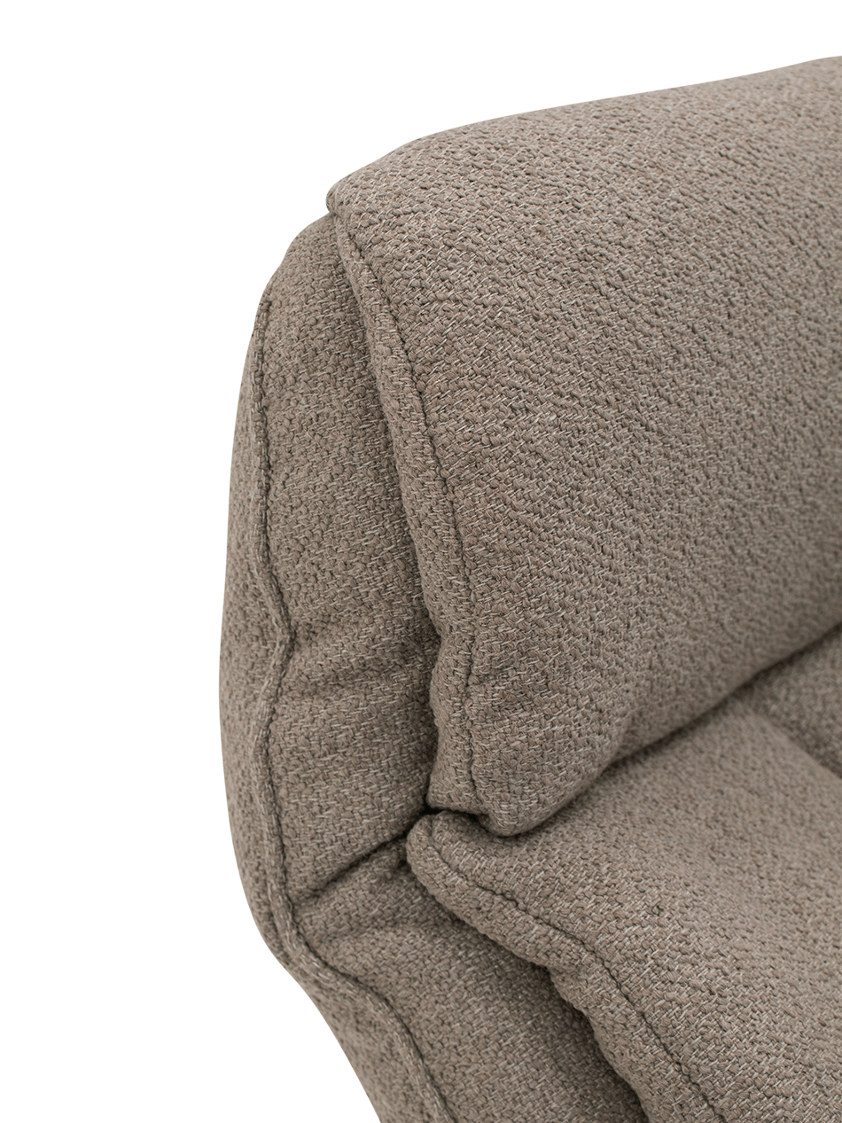 De Noran L is de ruimere variant binnen de Noran-reeks en biedt extra zitdiepte en breedte. Dankzij zijn zachte bekleding, afgeronde vormen en stijlvolle afwerking straalt deze relaxfauteuil pure rust en klasse uit.