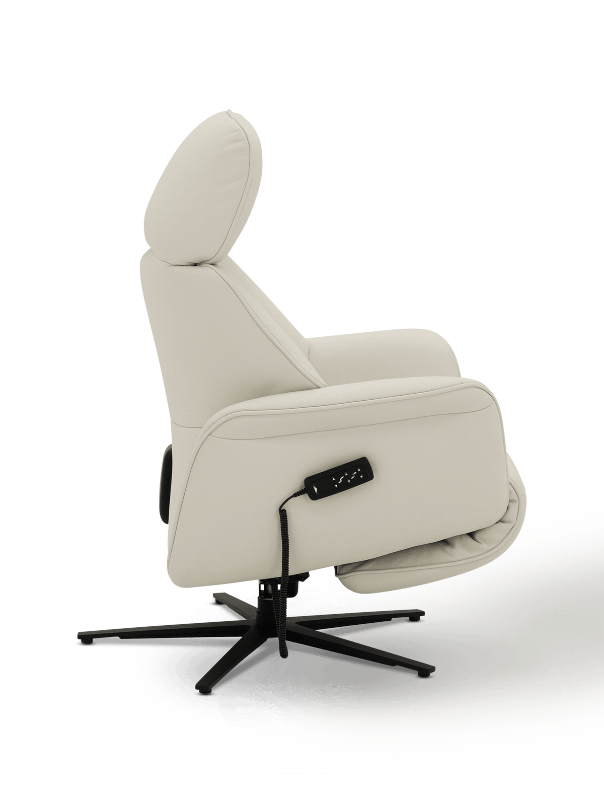 Met zijn 2 motoren verstel je rugleuning en voetensteun afzonderlijk – ideaal om jouw favoriete zithouding te vinden. Of je nu rechtop wil lezen, half wil relaxen of volledig wil liggen, Talin past zich met één druk op de knop aan. De traploos verstelbare hoofdsteun zorgt voor extra ondersteuning in de nek en maakt van elk moment een rustpunt.