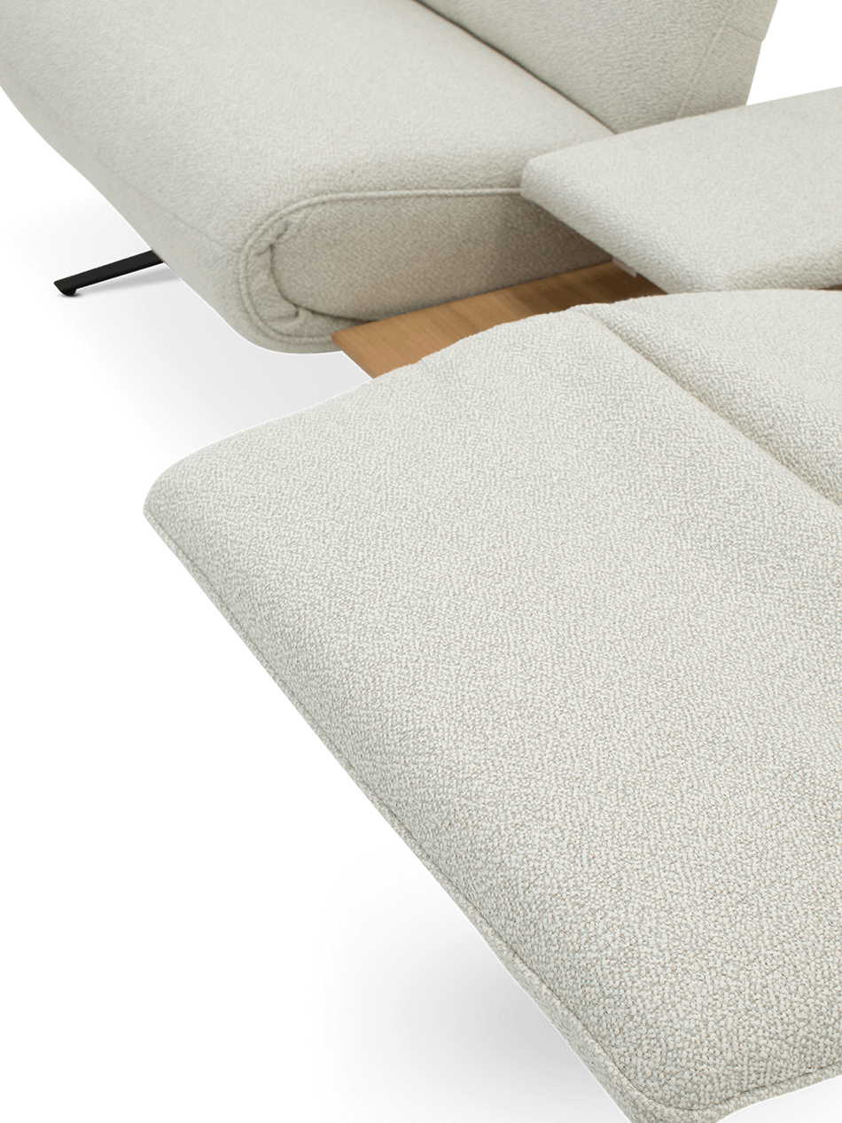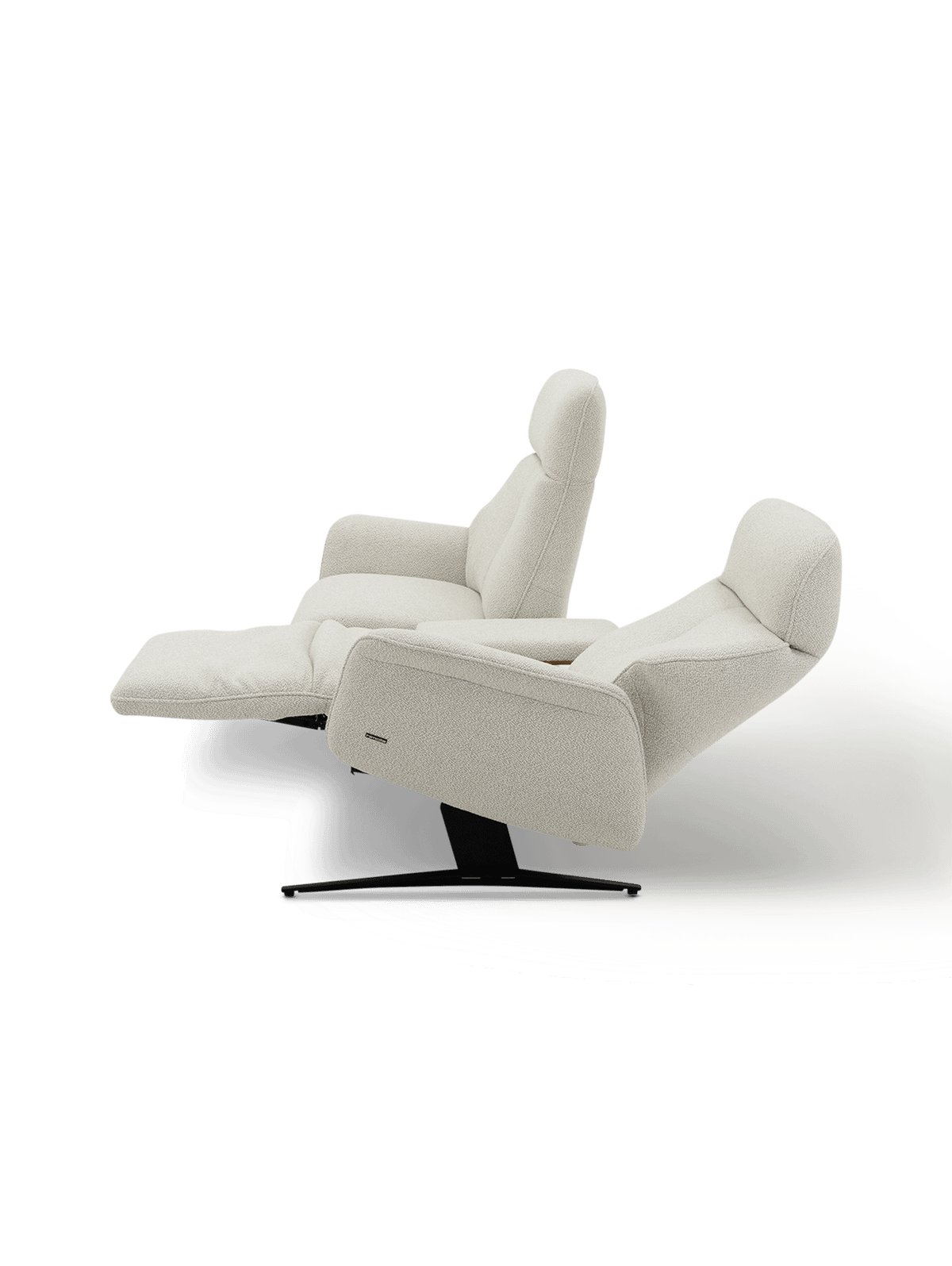 Dankzij de elektrische relaxfunctie met manuele schakelaar verstel je de rugleuning en voetensteun soepel en geruisloos. De kantelbare hoofdsteunen bieden extra nekondersteuning, terwijl de draaibare zittingen zorgen voor maximale bewegingsvrijheid. Elk detail is ontworpen voor persoonlijk comfort — van ontspannen televisie kijken tot volledig achterover liggen.