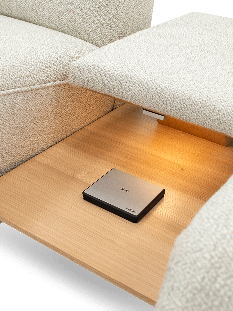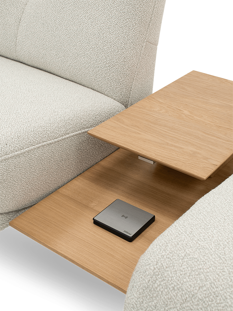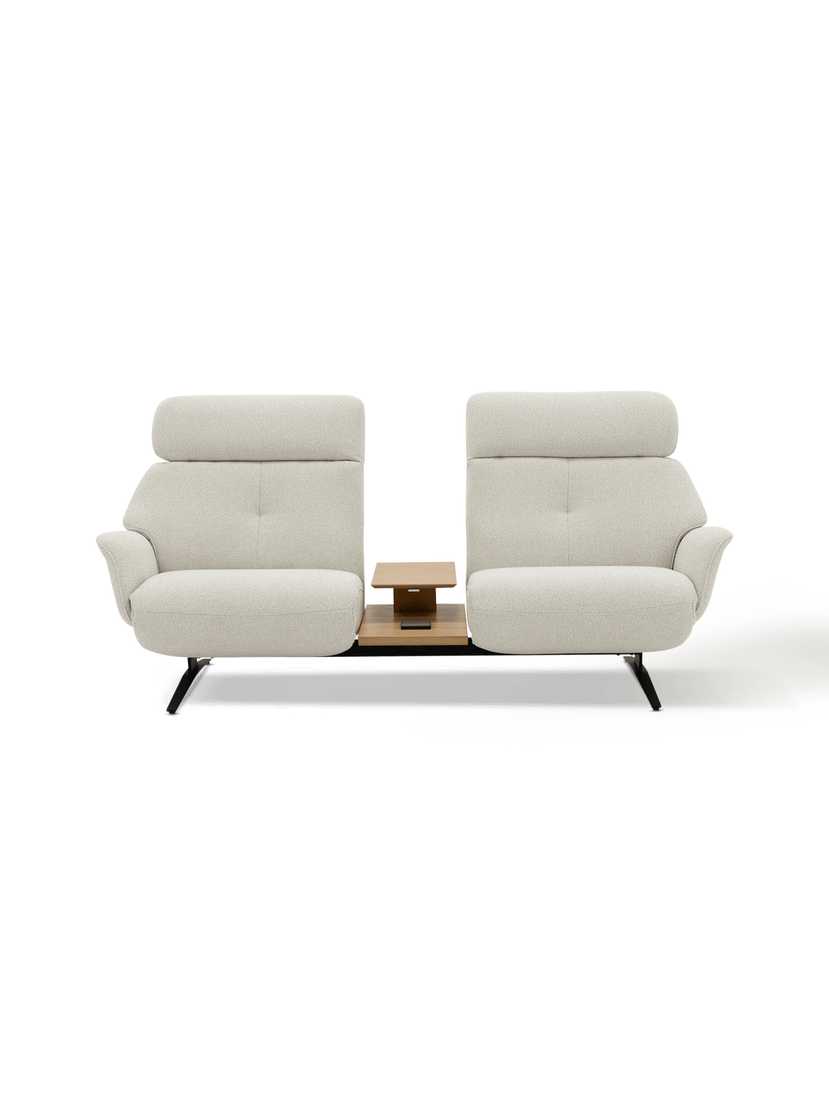 De Ceyla gaat verder dan comfort alleen: het houten middenelement biedt extra functionaliteit met een geïntegreerde tafel, USB-aansluiting en stopcontact en LED-verlichting voor een warme sfeer. Bovendien kan deze 2-zit worden uitgerust met een externe batterij, zodat je van alle elektrische functies kunt genieten zonder storende kabels.