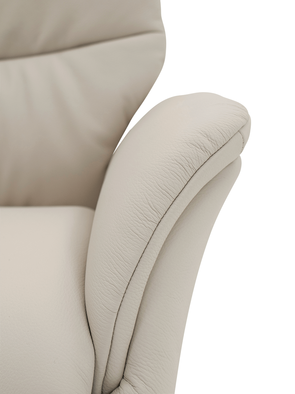 De Toulon is voorzien van een gebruiksvriendelijke bediening aan de zijkant en kan optioneel worden uitgerust met een externe batterij, zodat je de fauteuil vrij in de kamer kunt plaatsen zonder kabels in het zicht. Elk element — van de soepele motoren tot de stevige draaivoet — is ontworpen met aandacht voor kwaliteit en gebruiksgemak.