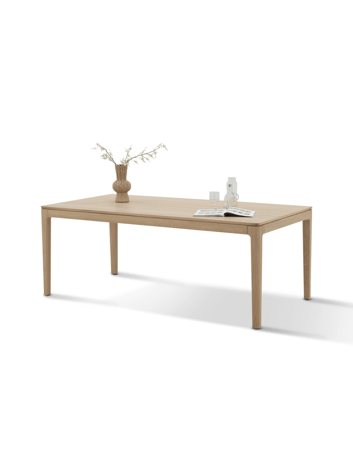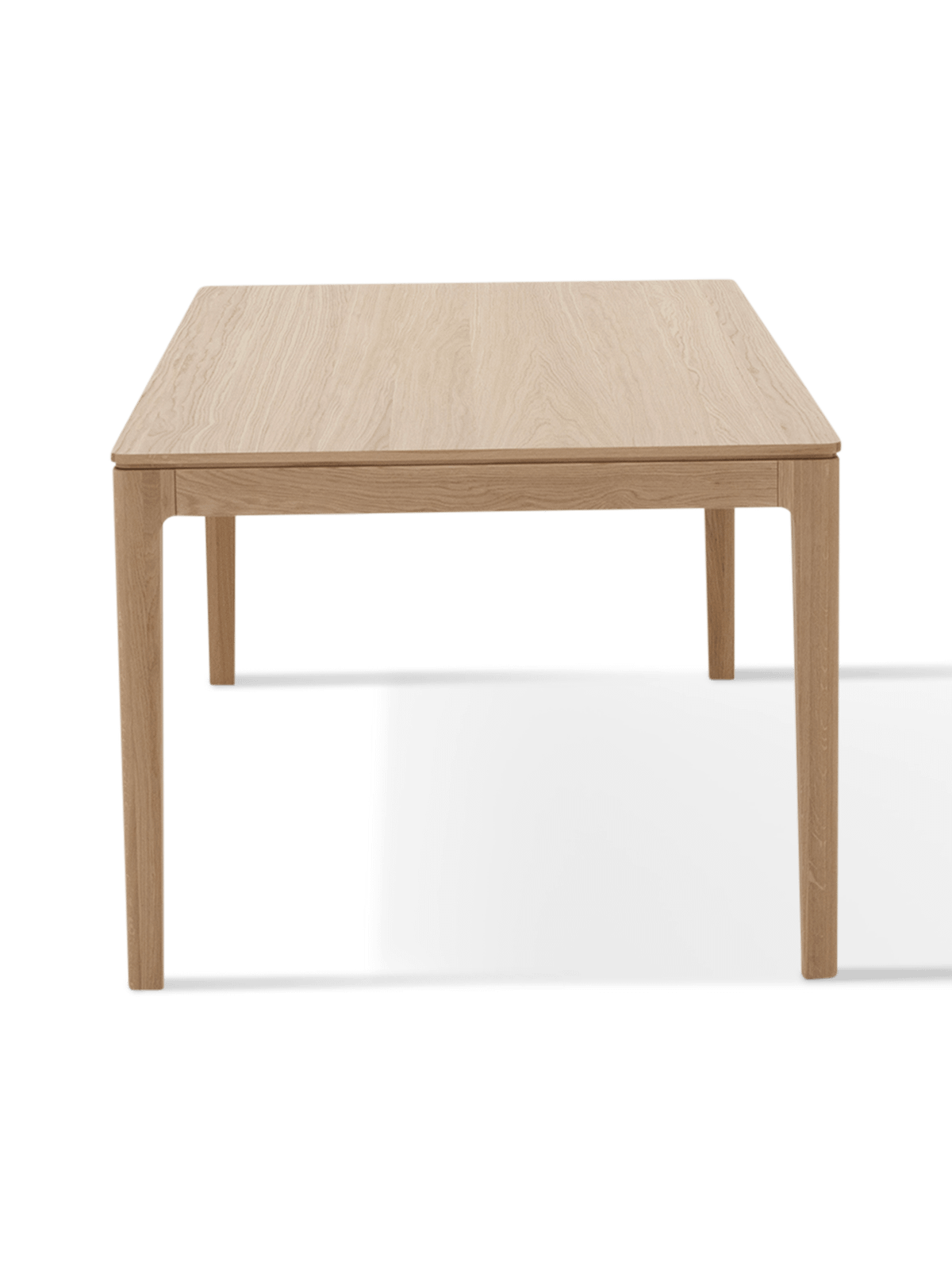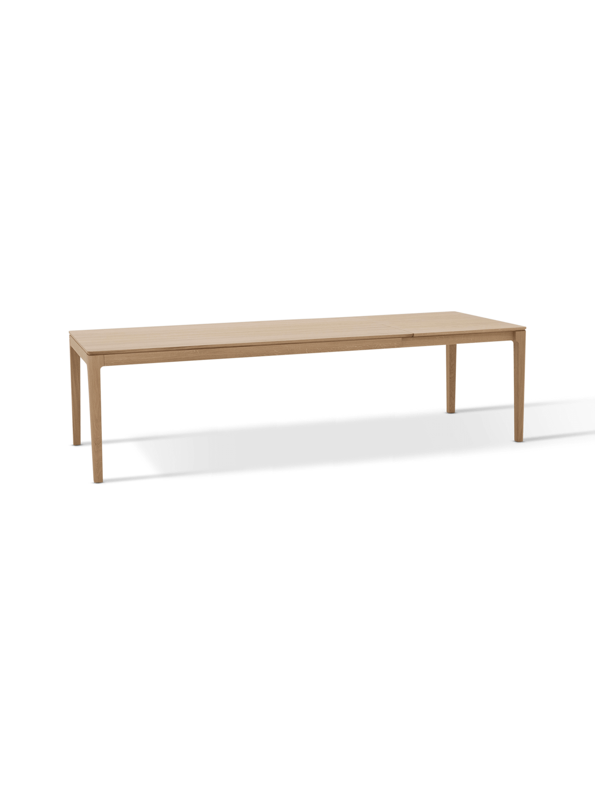 De slanke poten en subtiel afgeronde hoeken geven de tafel een moderne uitstraling. Het verlengsysteem is stevig en discreet geïntegreerd, waardoor de elegantie van het ontwerp behouden blijft.