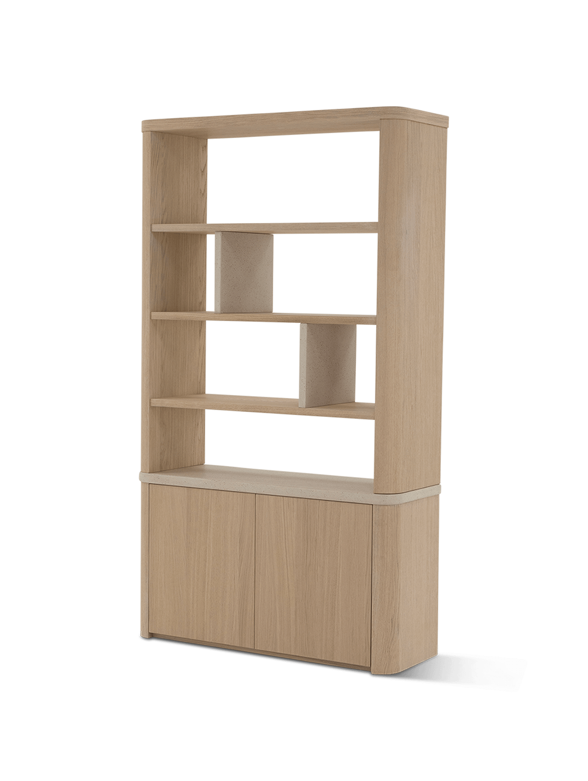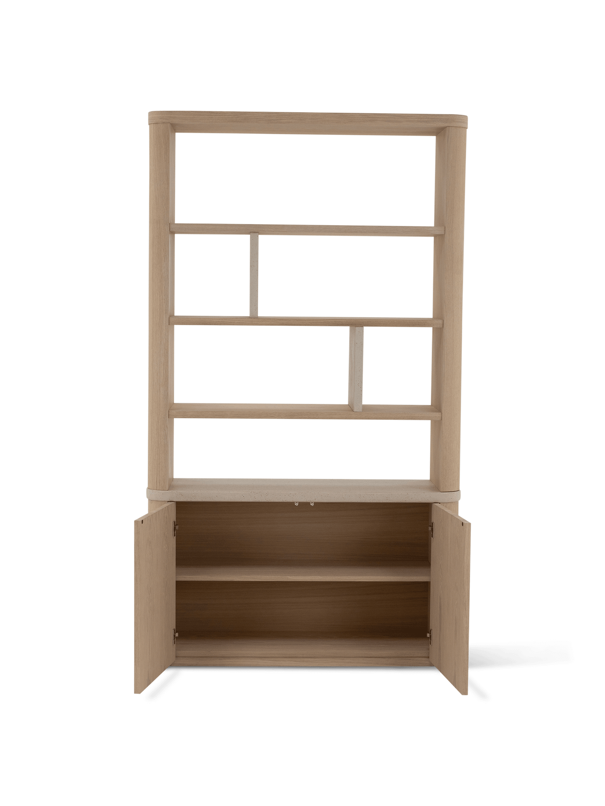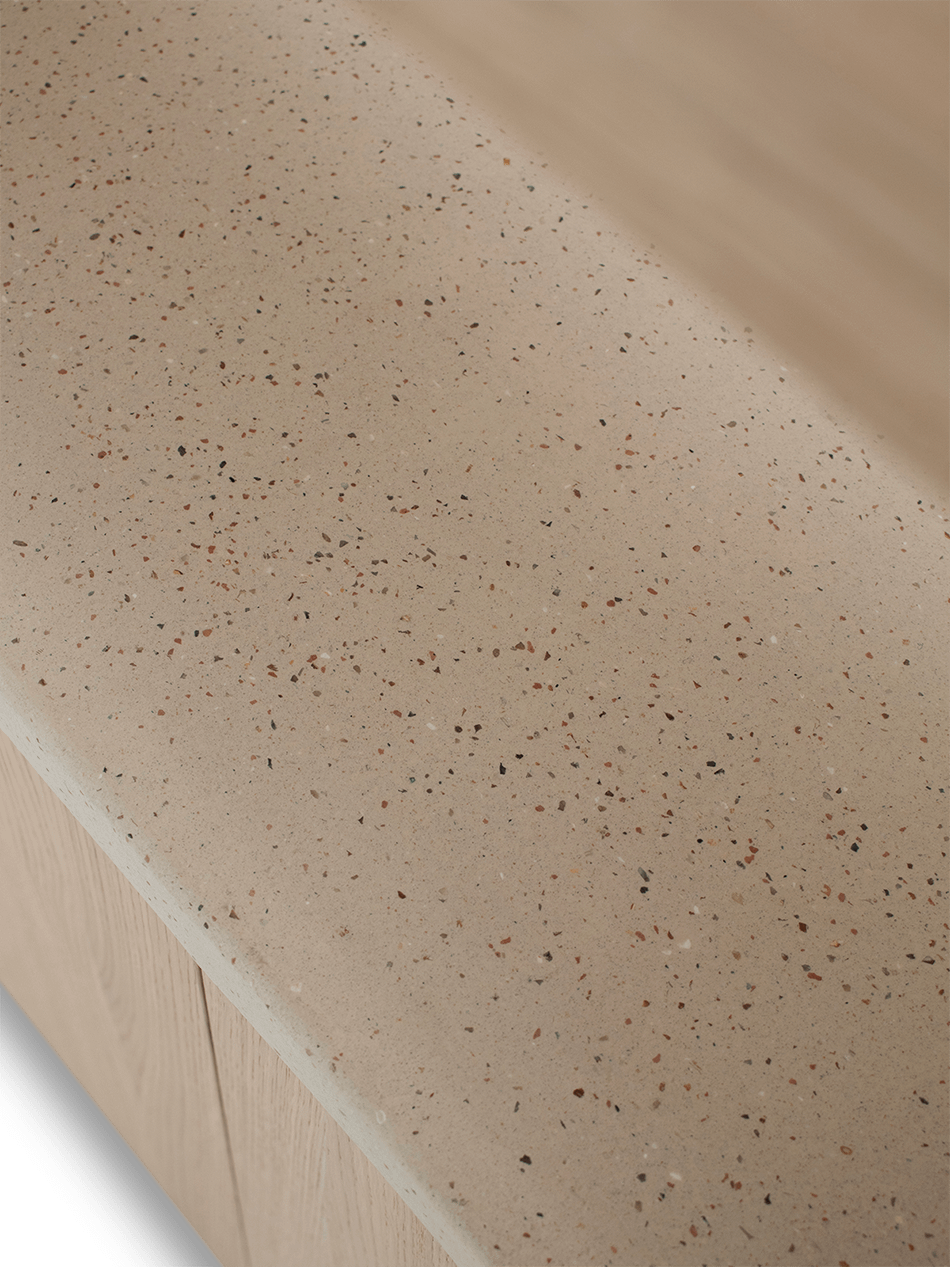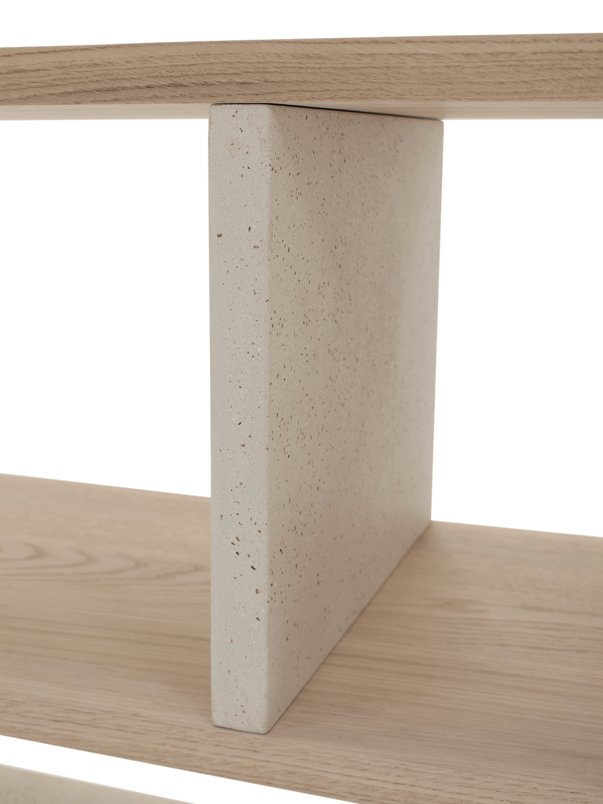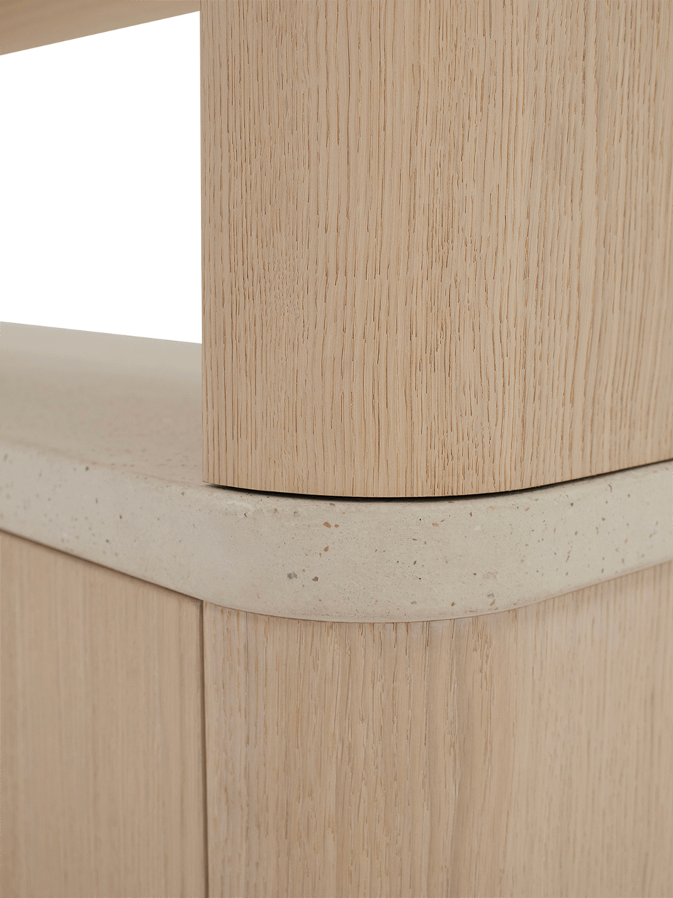 De wandkast Luma combineert verfijnde materialen en een luchtig ontwerp tot een stijlvolle eyecatcher. De combinatie van licht hout met subtiele granito-accenten geeft deze kast een natuurlijke uitstraling met een hedendaagse twist. De afgeronde hoeken en het gebalanceerde lijnenspel zorgen voor een zachte, harmonieuze look.