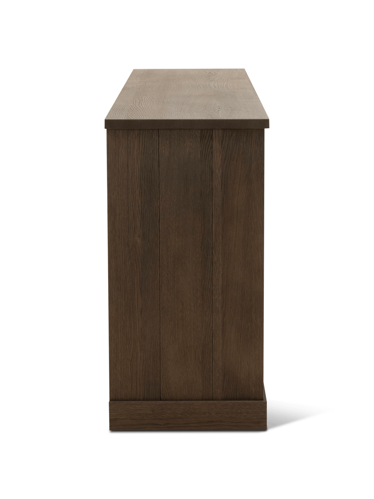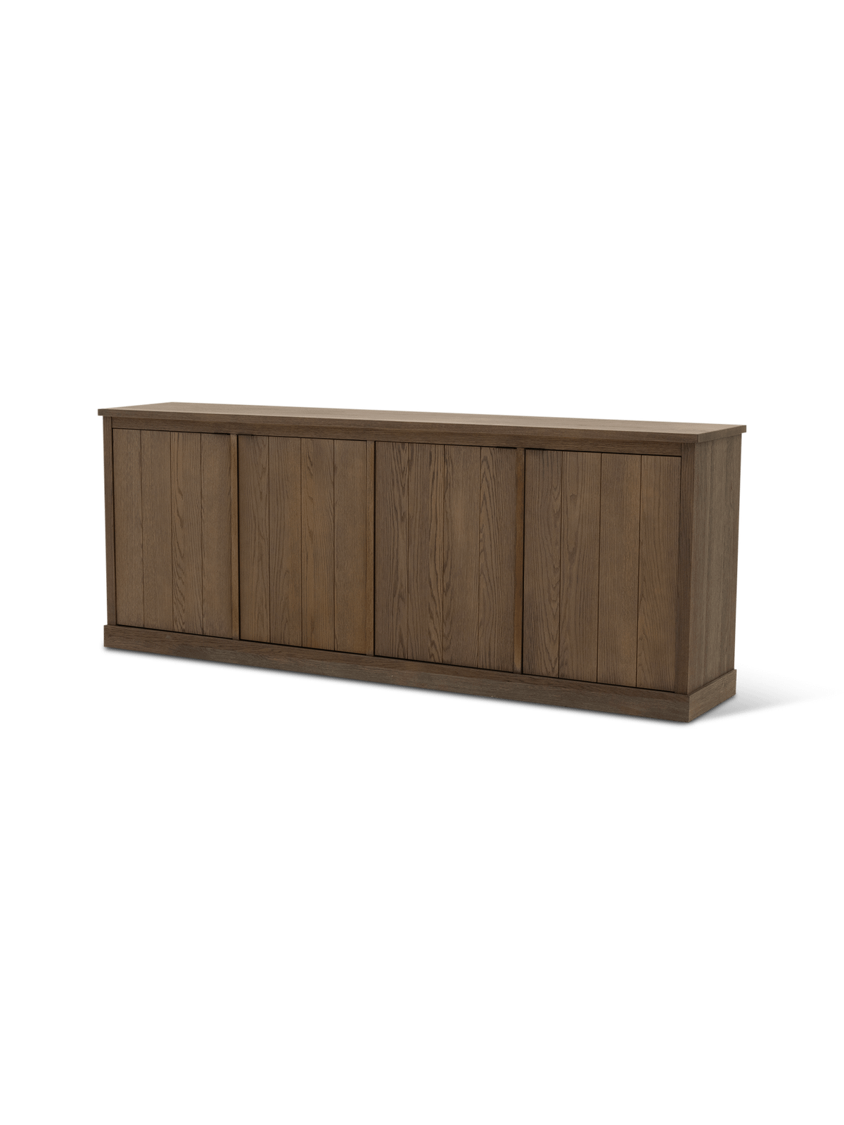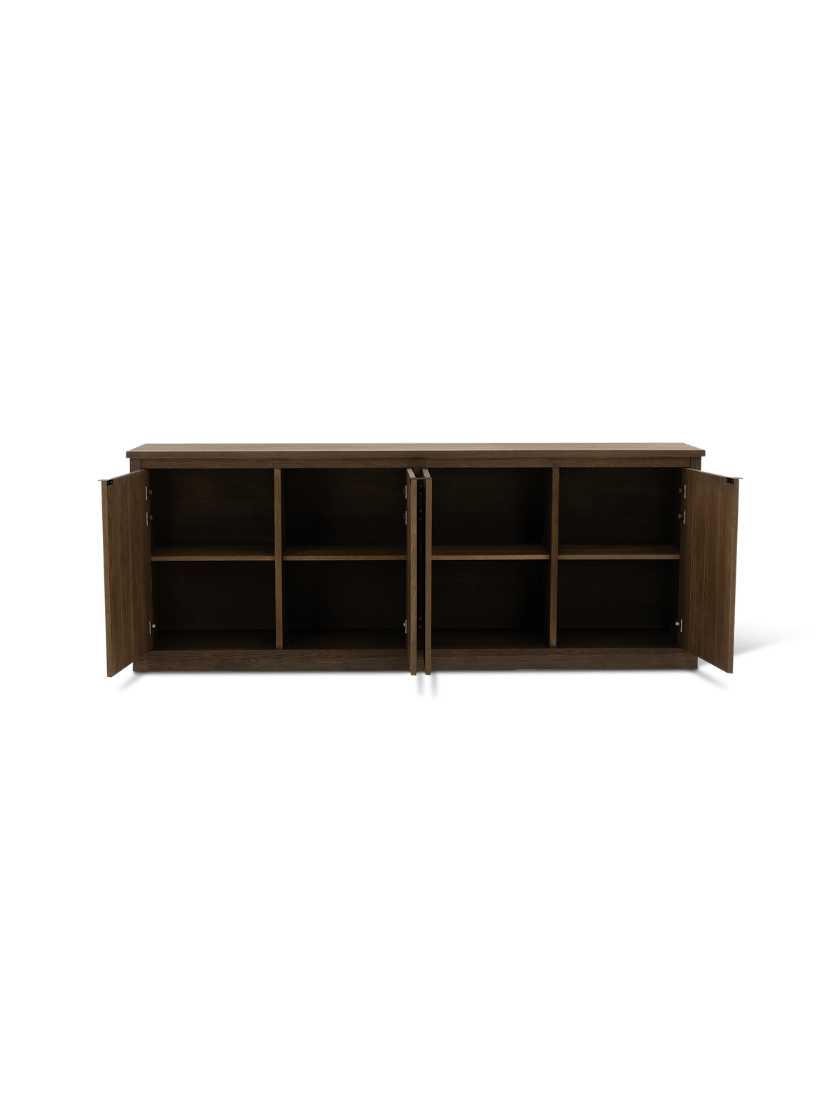 Het dressoir Portland Gold belichaamt de essentie van Belgisch vakmanschap. Elk meubel wordt met zorg vervaardigd in een eigen atelier, waar kwaliteit en afwerking op het hoogste niveau staan. De kast is volledig opgebouwd uit massief eikenhout met een gerookte afwerking, wat zorgt voor een warme, natuurlijke uitstraling met een hedendaagse toets.