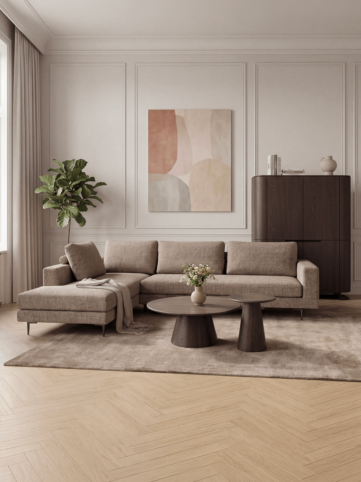 De elegante conische voet geeft de tafel niet alleen stabiliteit, maar ook een sculpturaal accent dat onmiddellijk in het oog springt. Dankzij zijn hoogte van 35 cm past de Globe A perfect bij moderne sofa’s en is hij ideaal om te combineren met de bijzettafel Globe A in dezelfde afwerking.
