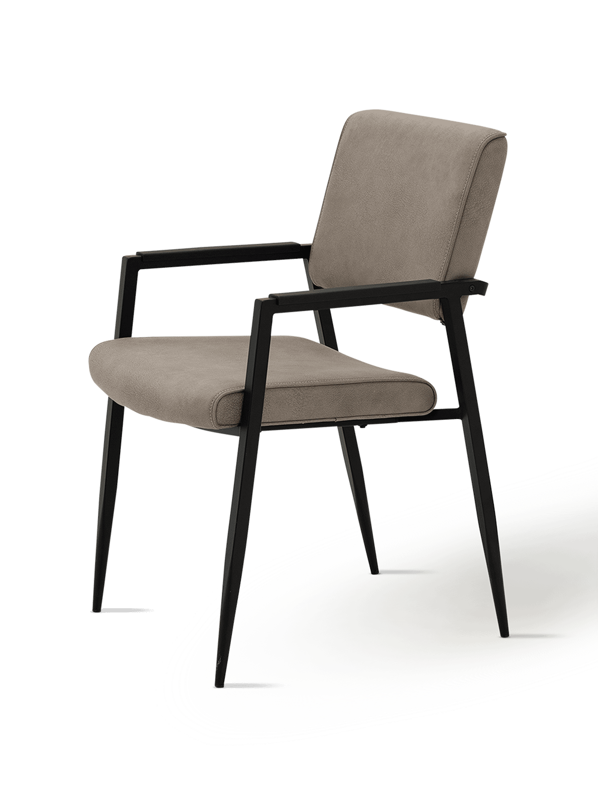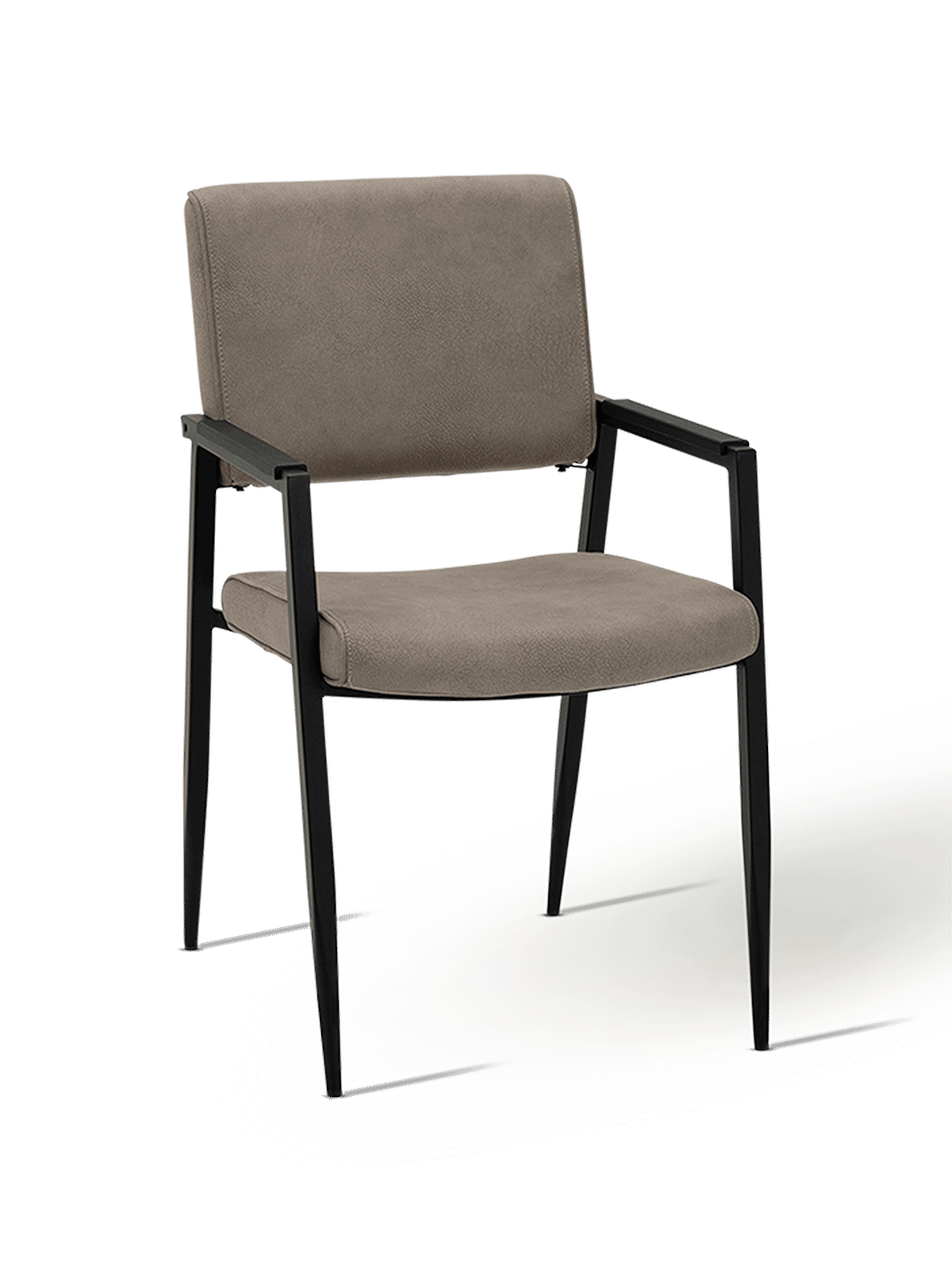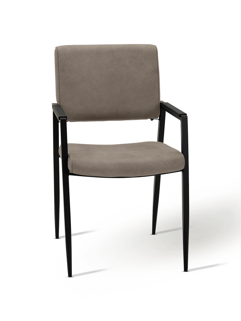 De rechte lijnen van het metalen onderstel zorgen voor een moderne, open look, terwijl de ergonomisch gevormde rug en zitting voor aangenaam zitcomfort zorgen. Dankzij de extra versteviging aan de armleuningen voelt Jisca stabiel en betrouwbaar aan, zelfs bij dagelijks gebruik. De licht afgeronde hoeken en zachte stoffering creëren een comfortabele zithouding zonder in te boeten aan stijl.