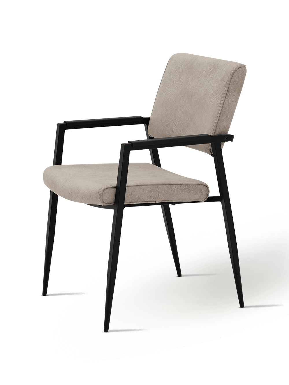 De rechte lijnen van het metalen onderstel zorgen voor een moderne, open look, terwijl de ergonomisch gevormde rug en zitting voor aangenaam zitcomfort zorgen. Dankzij de extra versteviging aan de armleuningen voelt Jisca stabiel en betrouwbaar aan, zelfs bij dagelijks gebruik. De licht afgeronde hoeken en zachte stoffering creëren een comfortabele zithouding zonder in te boeten aan stijl.