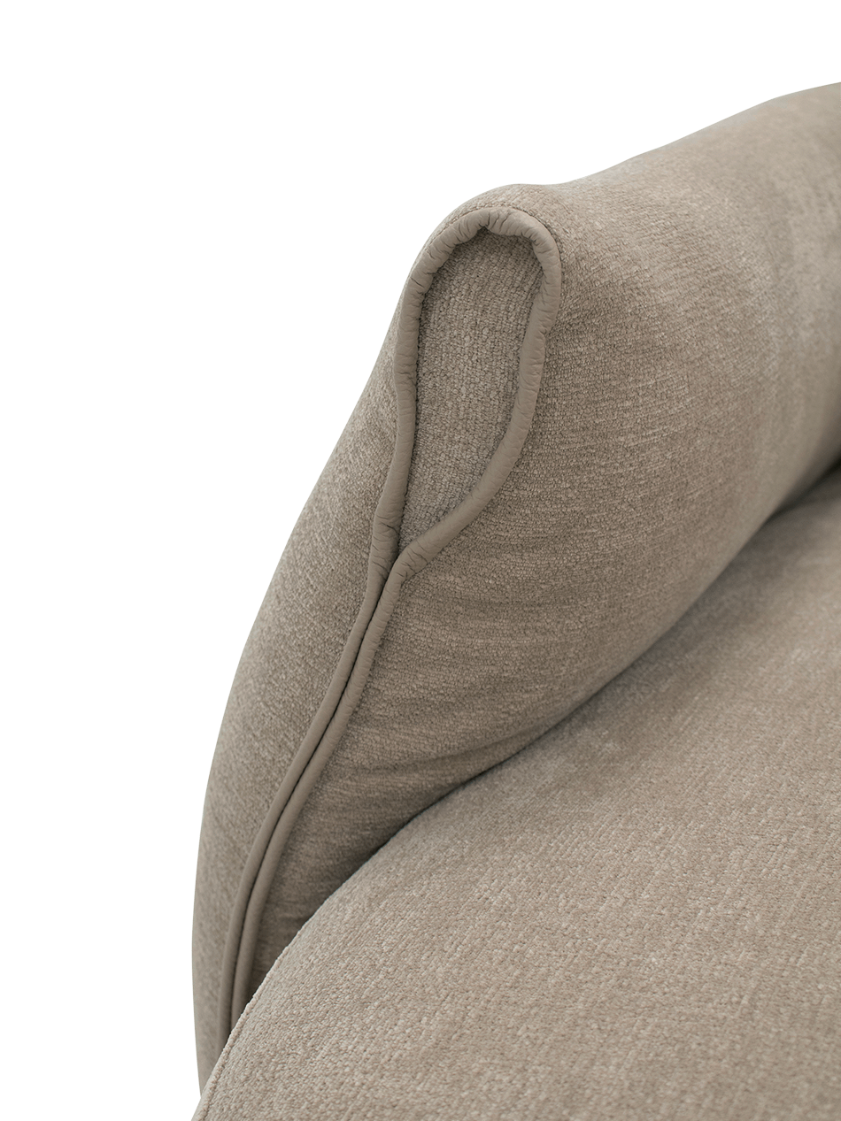 Het hoeksalon Caldana, van het gerenommeerde Italiaanse huis Franco Ferri, belichaamt pure verfijning in een modern interieur. Deze uitvoering in een zachte, fluwelen beige stof straalt warmte en klasse uit, terwijl het subtiele ton-sur-ton sierelement langs de zijkant een vakmanschap verraadt dat je meteen herkent als typisch Italiaans design.