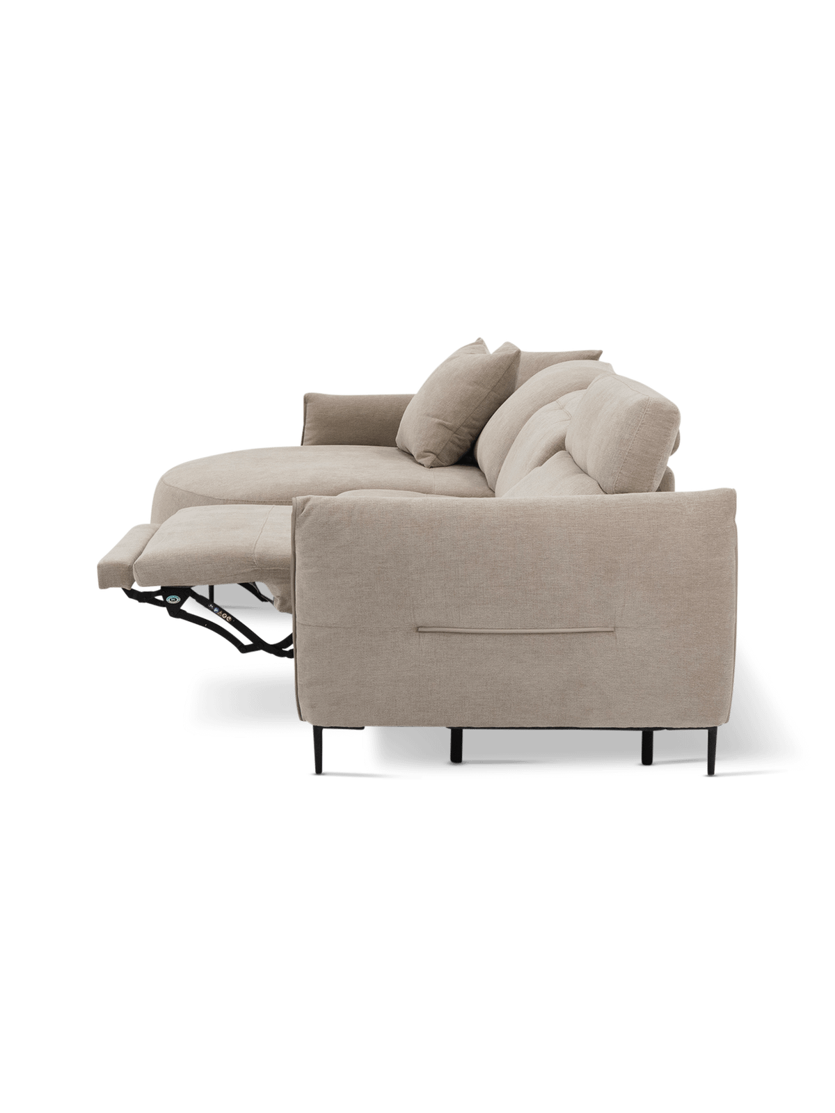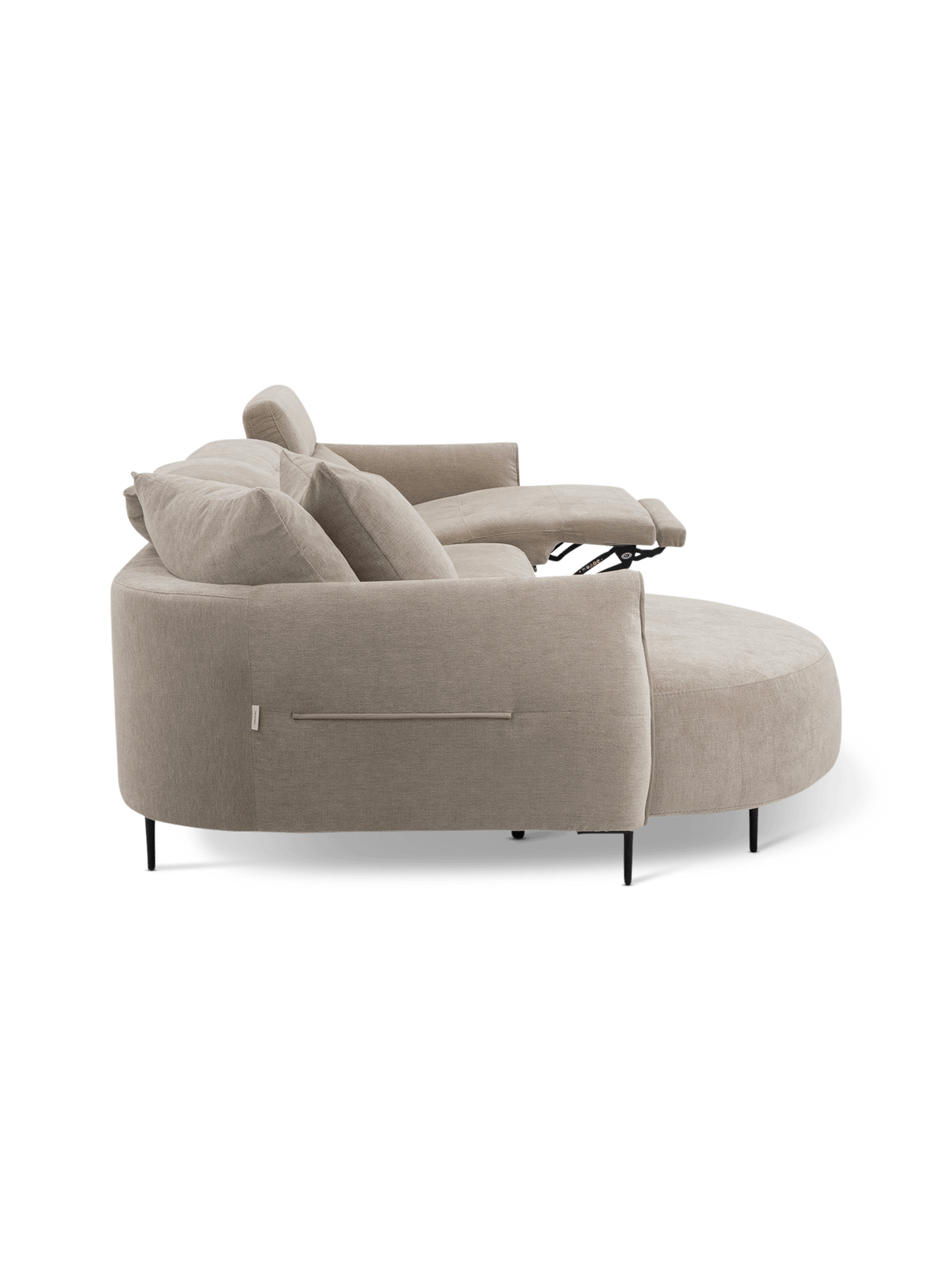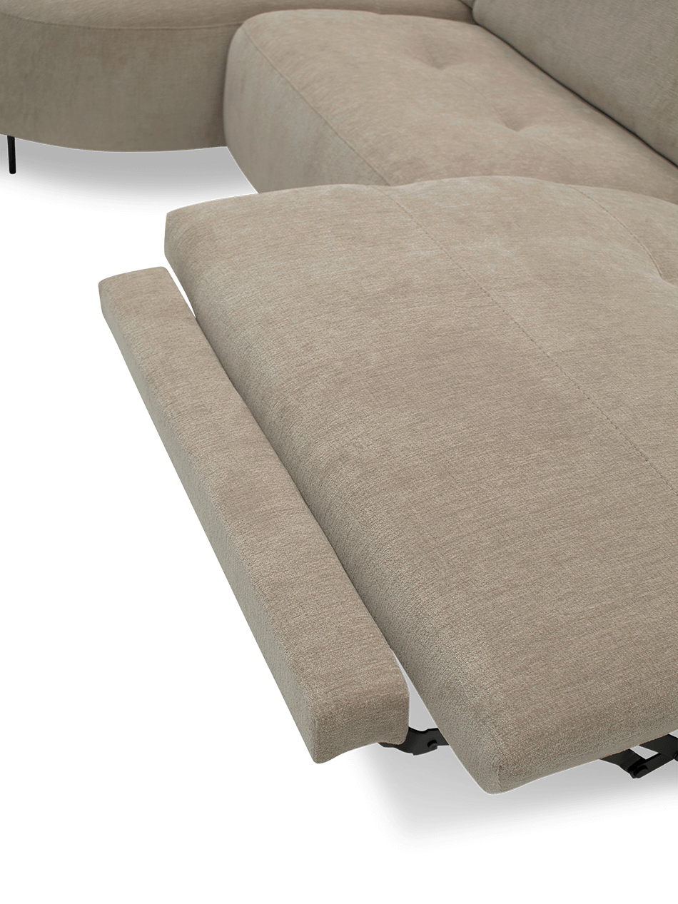Caldana combineert een luchtige, afgeronde vormgeving met hoogstaande techniek. De geïntegreerde relaxfunctie is volledig onzichtbaar weggewerkt en activeer je via een discreet bedieningspaneel. De beweging verloopt stil, vloeiend en uiterst ergonomisch – ideaal om na een lange dag volledig tot rust te komen.