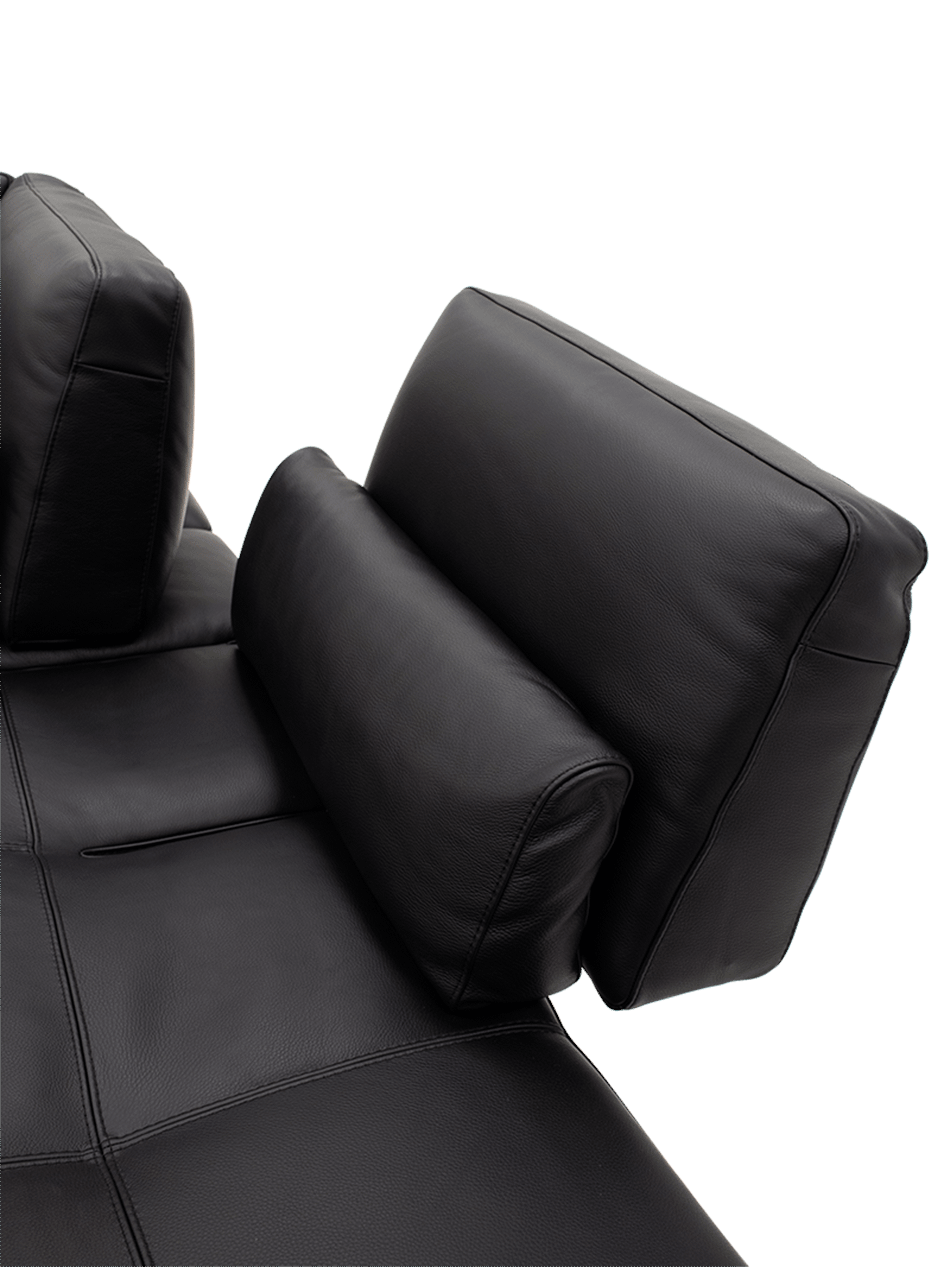 Uniek aan dit model zijn de verplaatsbare rugkussens. Met één eenvoudige beweging creëer je extra diepte en dus meer ligruimte — ideaal voor lange avonden, een cosy filmnight of ontspannen loungen met vrienden. Deze slimme functionaliteit blijft volledig onzichtbaar in het design, maar verhoogt het comfort aanzienlijk.