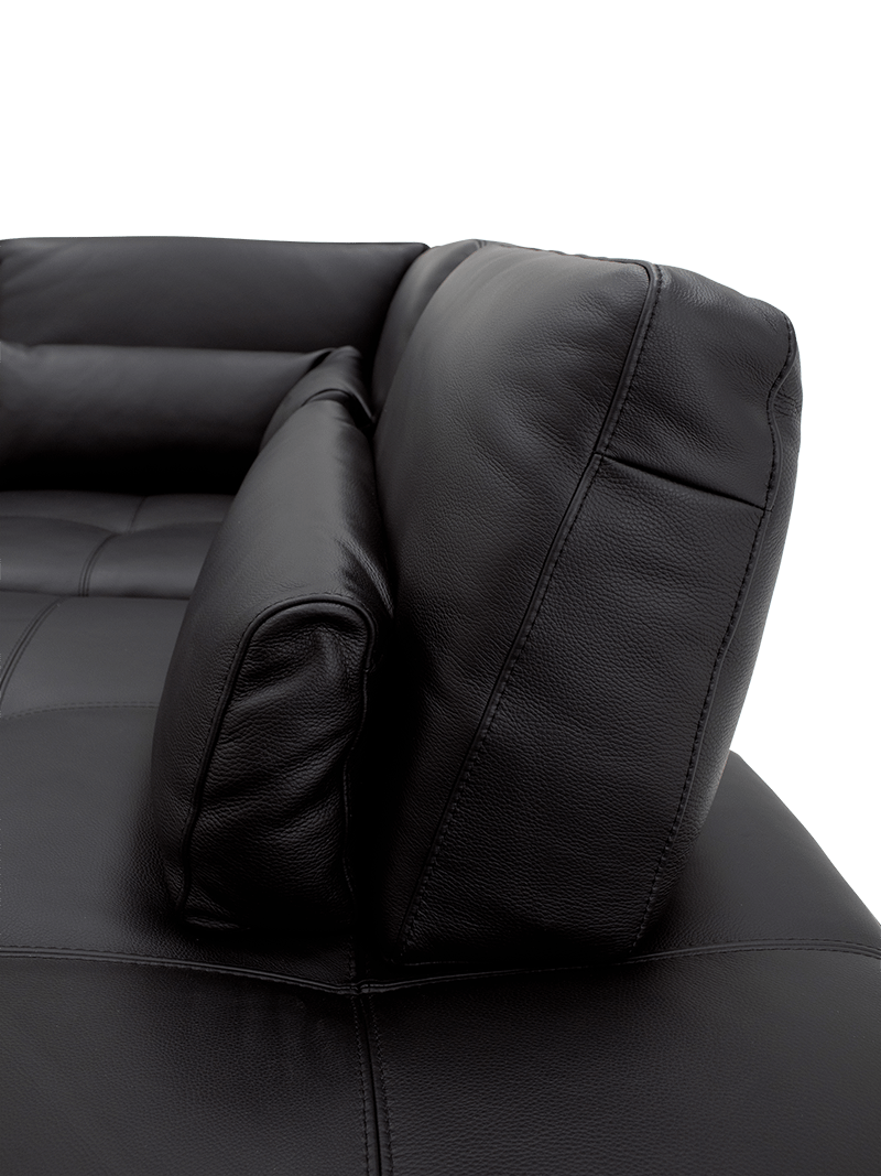 Met hoeksalon Cappucino haal je een toonbeeld van Italiaans vakmanschap in huis. Dit meesterlijk afgewerkte ontwerp van Franco Ferri combineert het zachtste, zuiverste zwarte leder met een krachtige moderne vormentaal. Het resultaat? Een statement piece dat tegelijk elegant én indrukwekkend oogt — precies zoals je mag verwachten van een salon in het hogere designsegment.