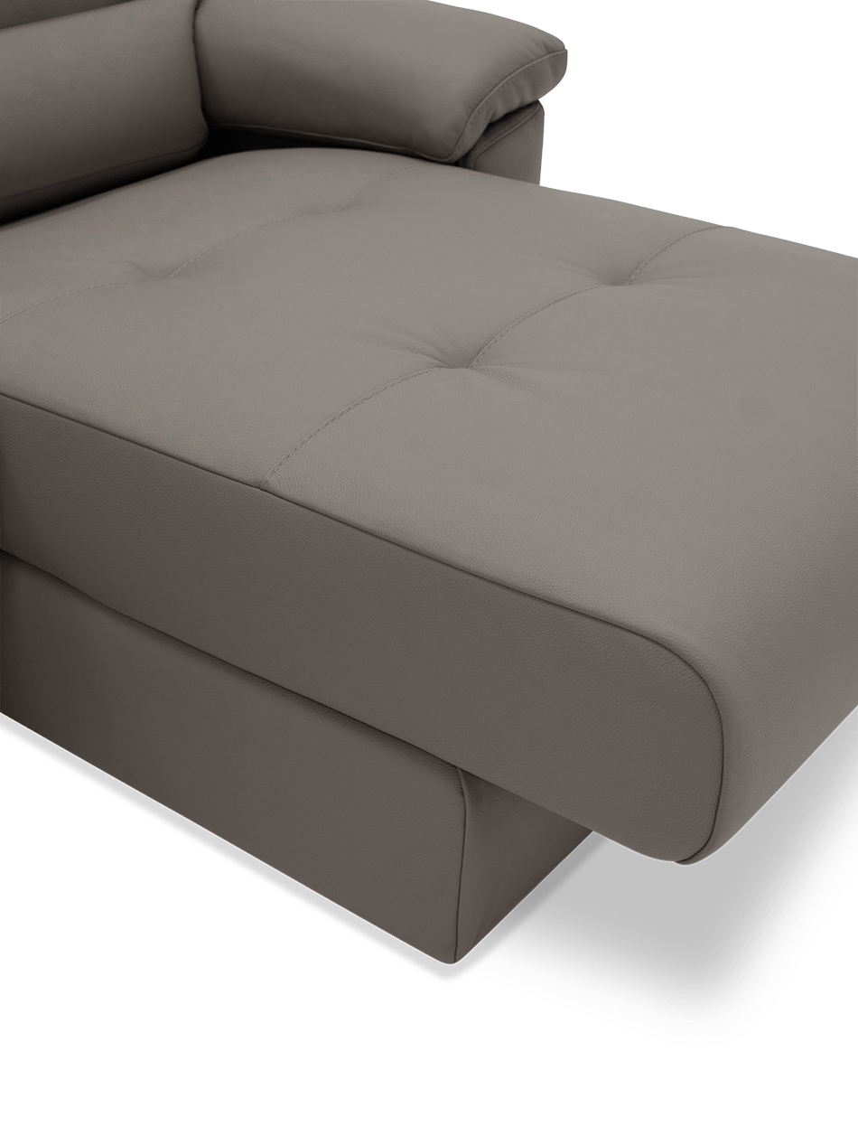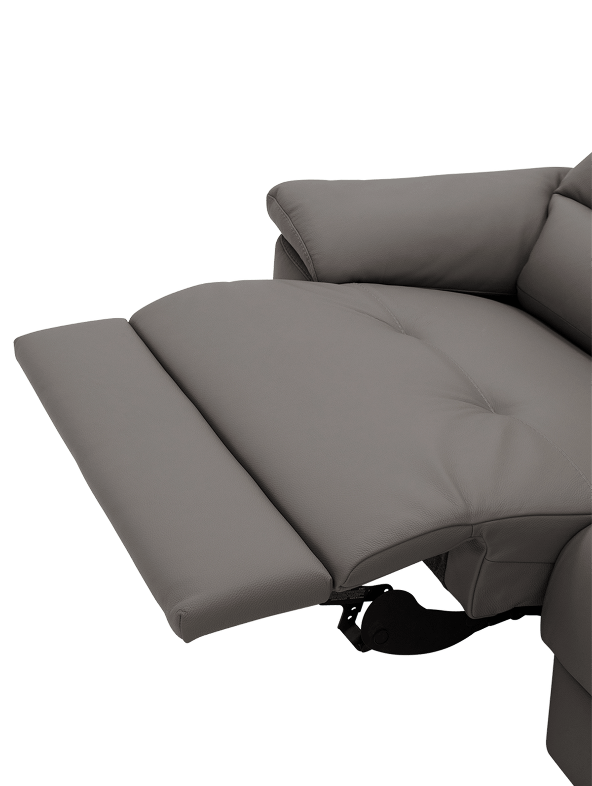 Daarnaast heeft de salon een uitschuifbare longchair, ideaal om languit te rusten of de benen te strekken. De bediening gebeurt eenvoudig via een handig zijpaneel dat discreet in de armleuning is verwerkt.
