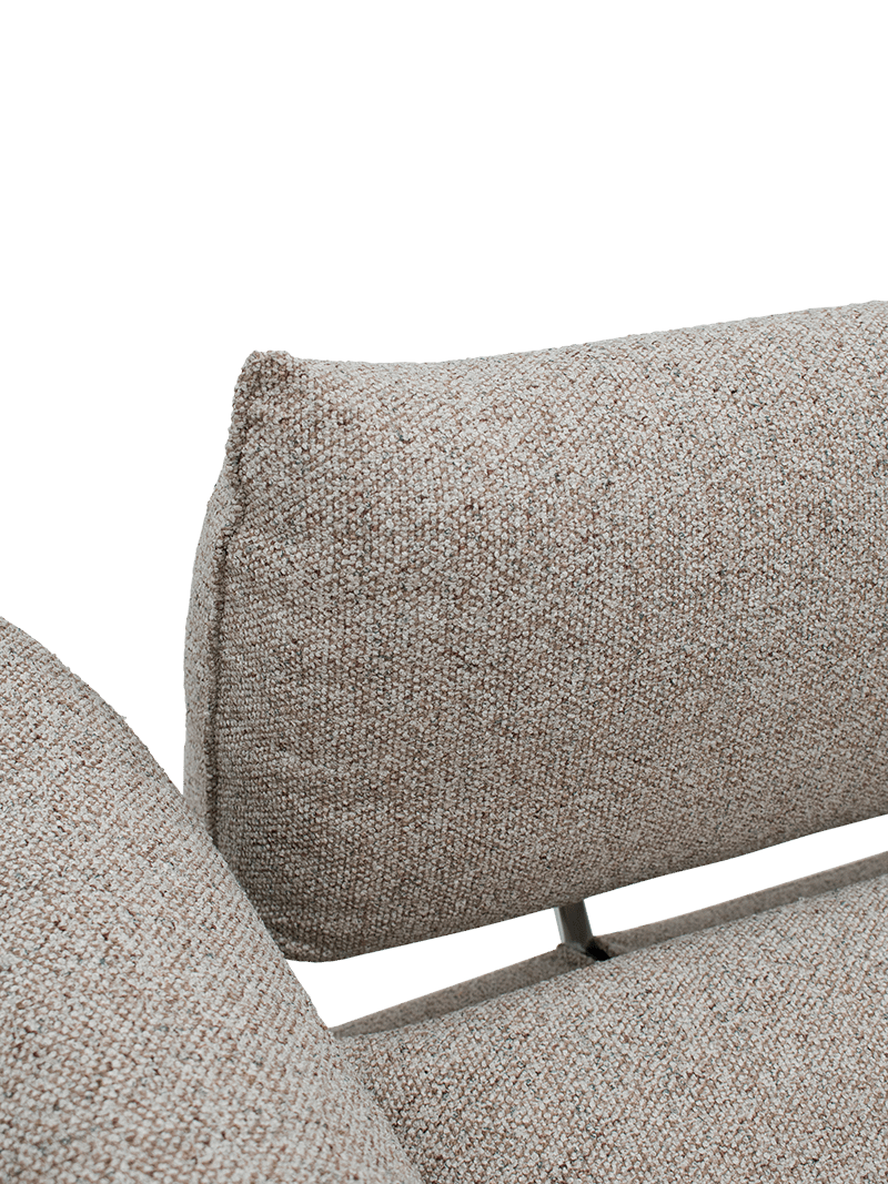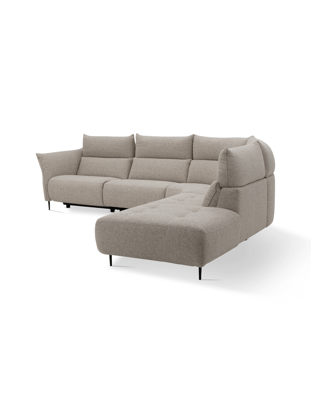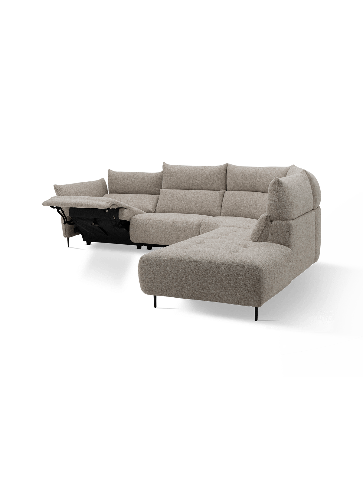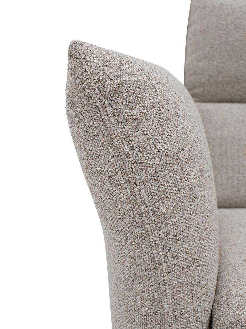 Wat Tisno onderscheidt, is de geïntegreerde relaxfunctie. Met een discrete bediening schuiven de rug en voetensteun uit, en wordt de hoofdsteun mee uitschuifbaar — zodat je lichaam volledig ondersteund wordt bij liggen of loungen. Voor mensen die graag ontspannen met de benen omhoog of af en toe een dutje doen op de bank, is dit een enorme meerwaarde. Geen gedoe met losse voetenbanken of dekens: alles is ingebouwd en klaar voor gebruik.