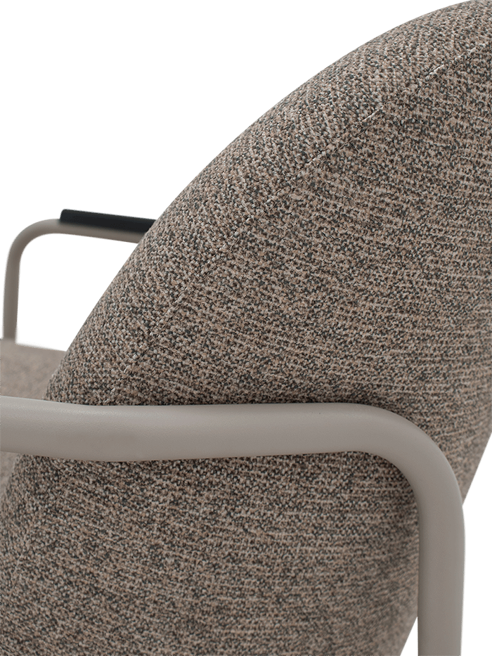 De fauteuil Zelenka straalt een ingetogen luxe uit dankzij zijn harmonieuze ton-sur-ton afwerking in de kleur Shitake. Het zachte silhouet en de afgeronde vormen zorgen voor een warme, uitnodigende uitstraling, terwijl de fijne metalen poten met poedercoating perfect aansluiten bij de stofkleur — voor een verfijnde en eigentijdse look.