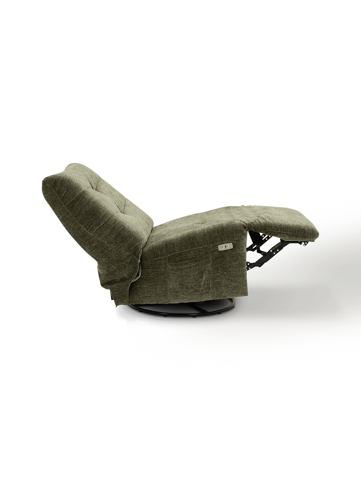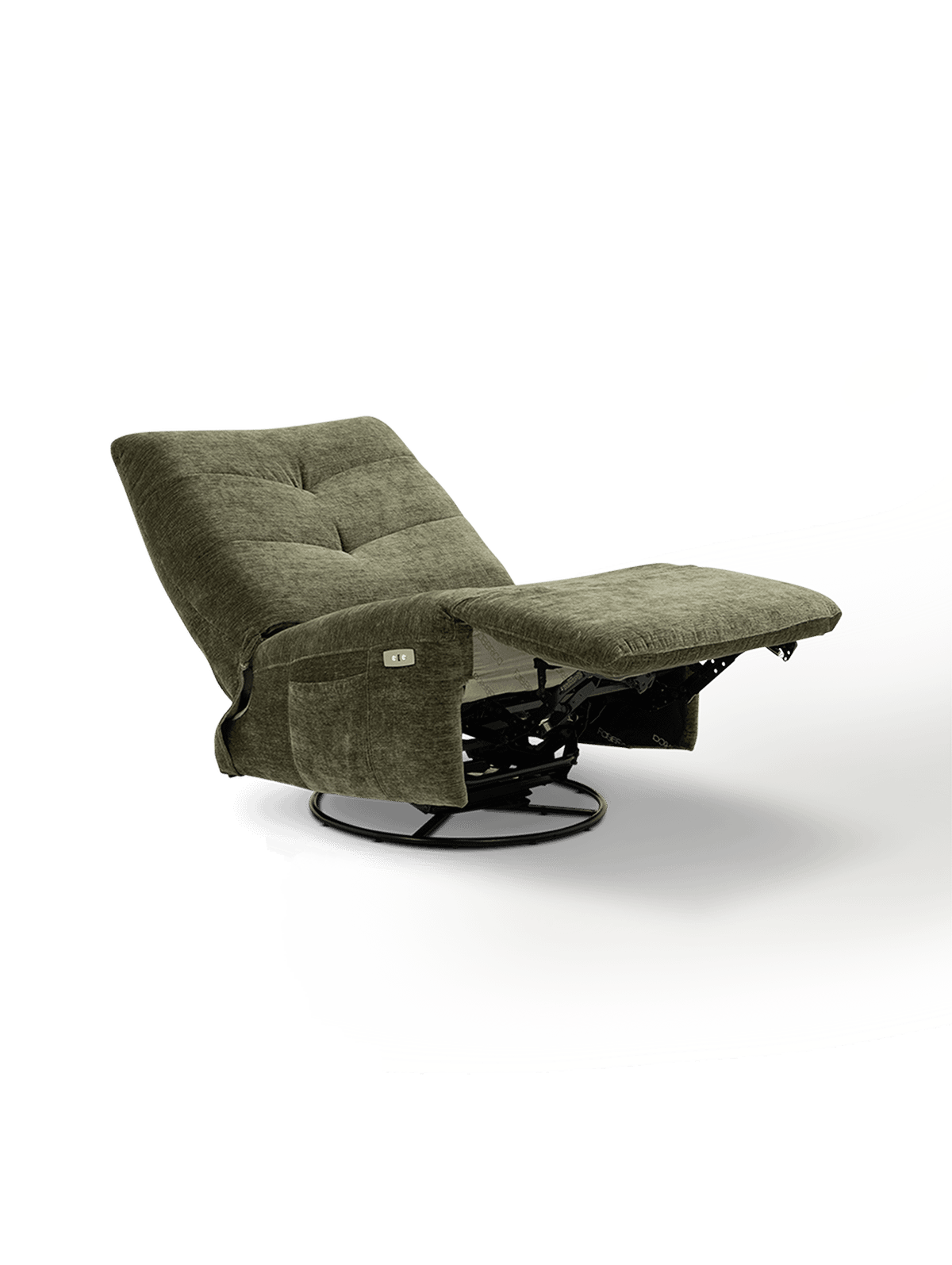 Met de geïntegreerde relaxfunctie geniet je moeiteloos van verschillende zithoudingen. De fauteuil is uitgerust met een handige accu, waardoor je hem vrij in de ruimte kan plaatsen zonder storende kabels. Daarnaast zorgen de draai- en schommelfunctie voor extra flexibiliteit en een aangename, rustgevende zitervaring.