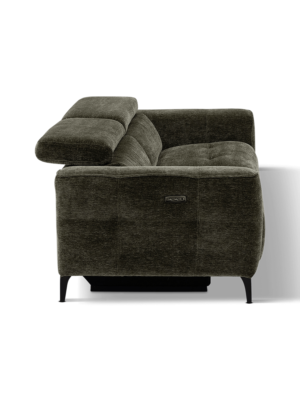 De 2,5-zit Mezar combineert luxueus comfort met een verfijnde uitstraling. De diepe zitting en zachte bekleding in Forest Green creëren een warme, uitnodigende sfeer. Dankzij de verstelbare hoofd- én voetsteunen geniet je van persoonlijk zitcomfort, ideaal voor ultieme ontspanning.