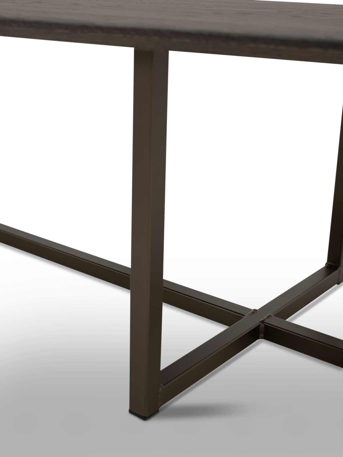Het onderstel met dubbele U-vorm zorgt niet alleen voor een eigentijdse look, maar ook voor een stevige, stabiele stand. De open vorm houdt het geheel luchtig, terwijl de constructie robuust aanvoelt.