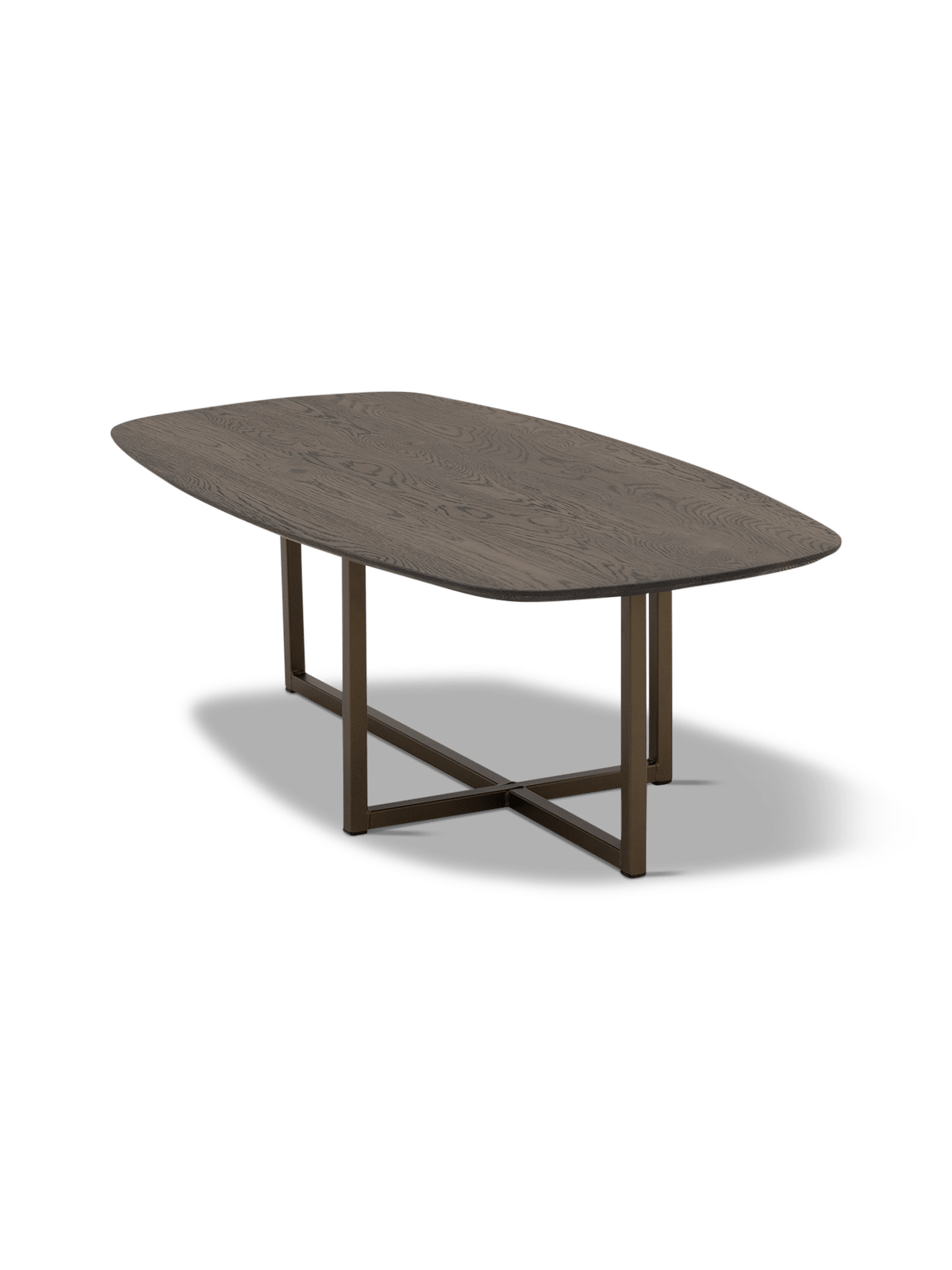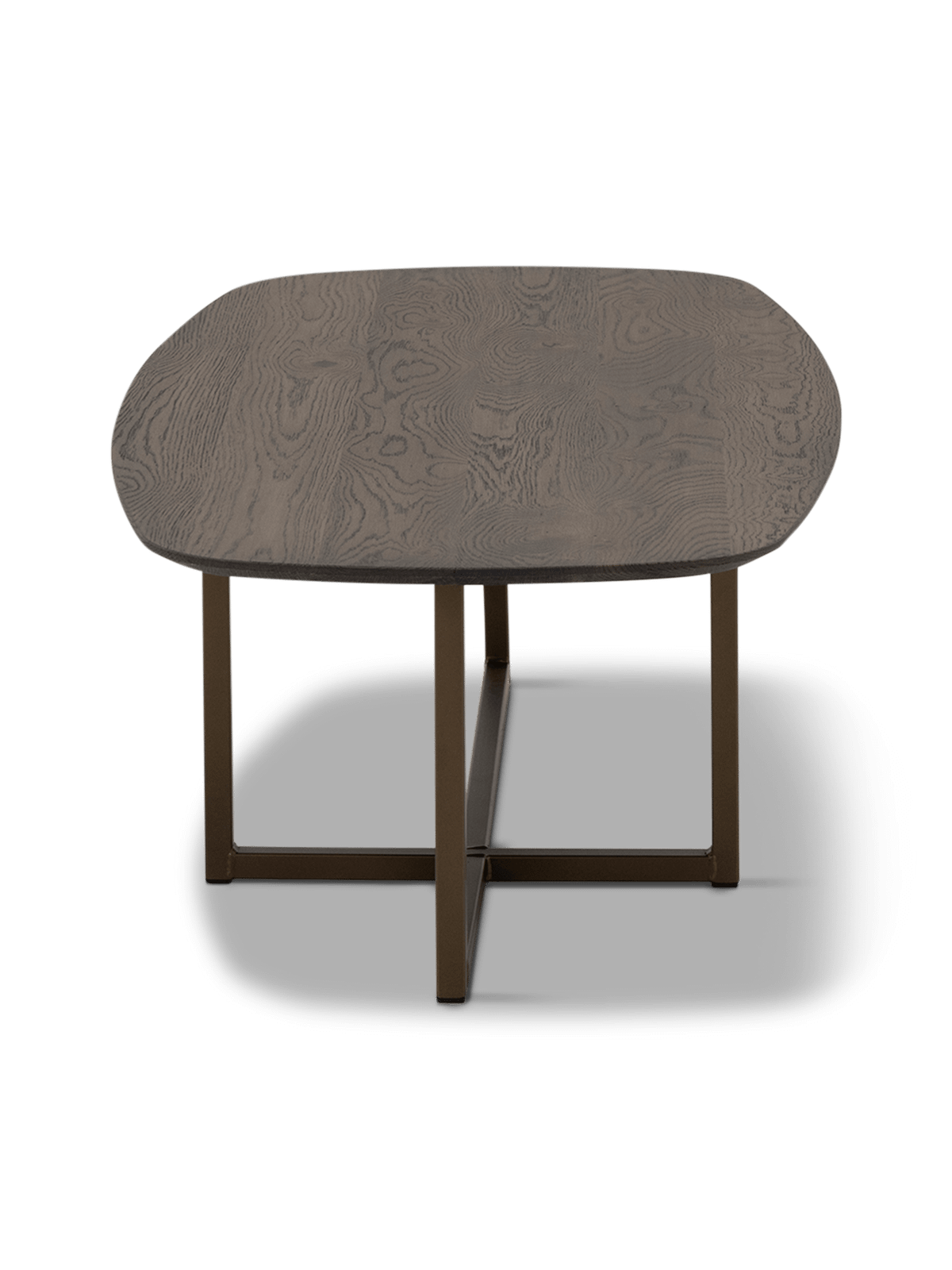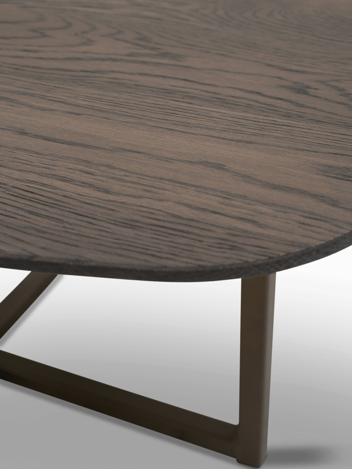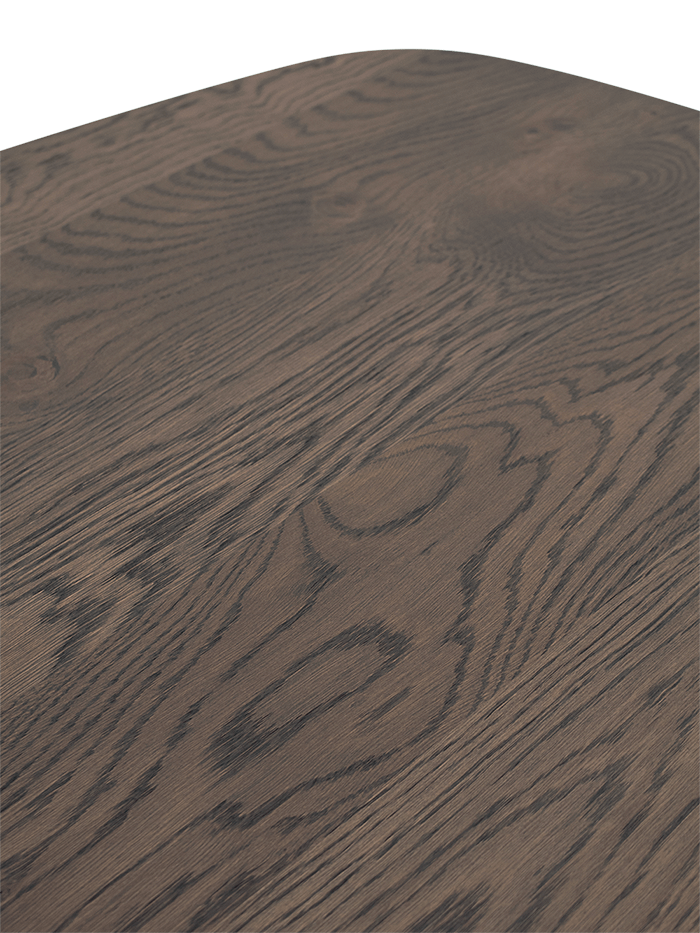 Salontafel Conico is een stijlvolle blikvanger met een zacht afgerond tafelblad. Door de combinatie van het donkere blad en het dubbele U-onderstel krijgt de tafel een moderne, grafische uitstraling die mooi past in zowel een strak als warm interieur.