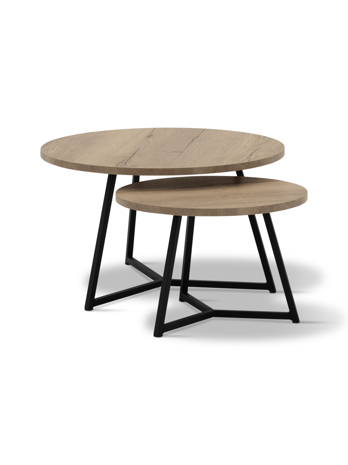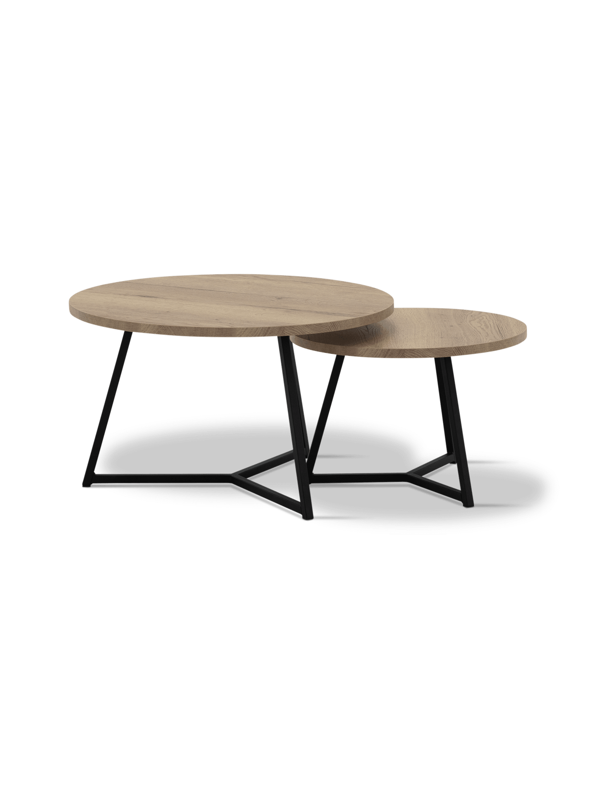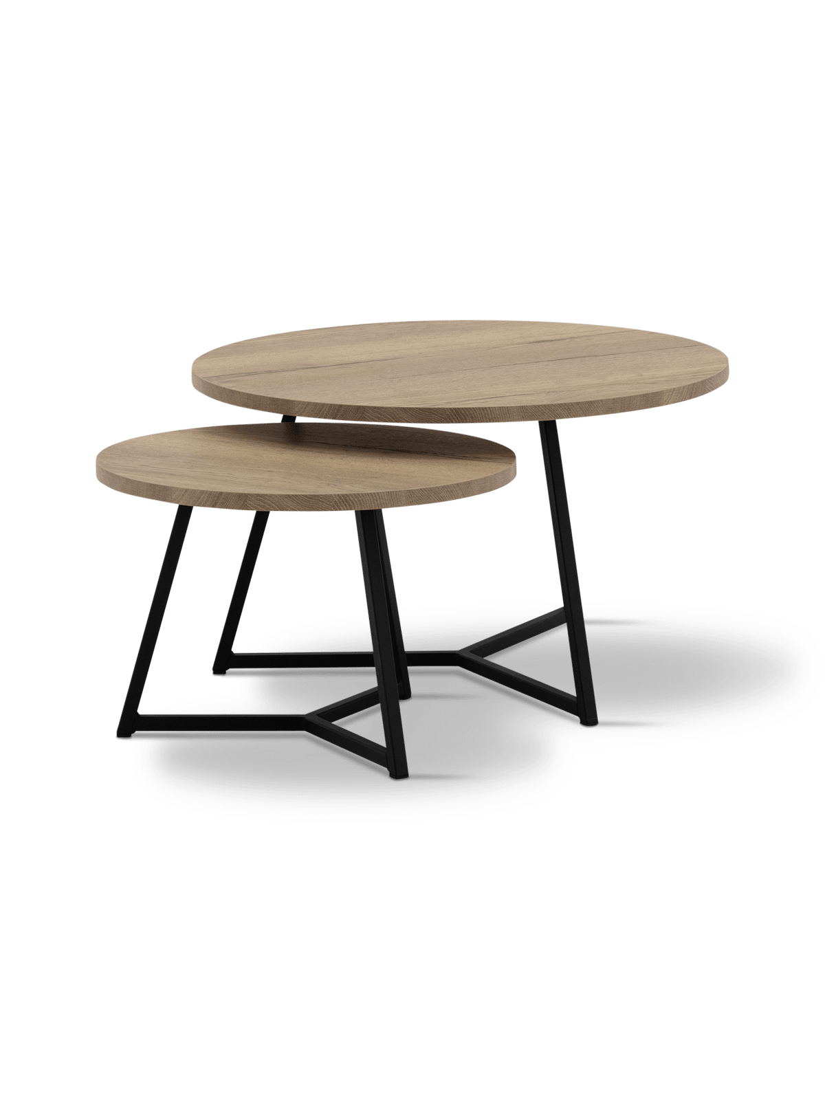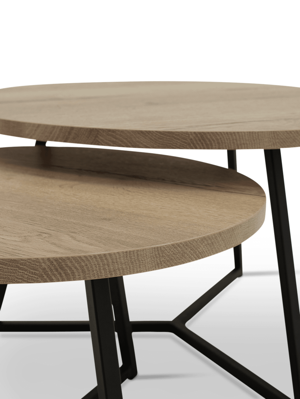 Salontafelset Zyan bestaat uit twee perfect op elkaar afgestemde ronde tafels die zowel samen als afzonderlijk gebruikt kunnen worden. Dankzij het slimme ontwerp schuif je de tafeltjes eenvoudig onder elkaar of plaats je ze net apart voor een speels en dynamisch effect in je zithoek.