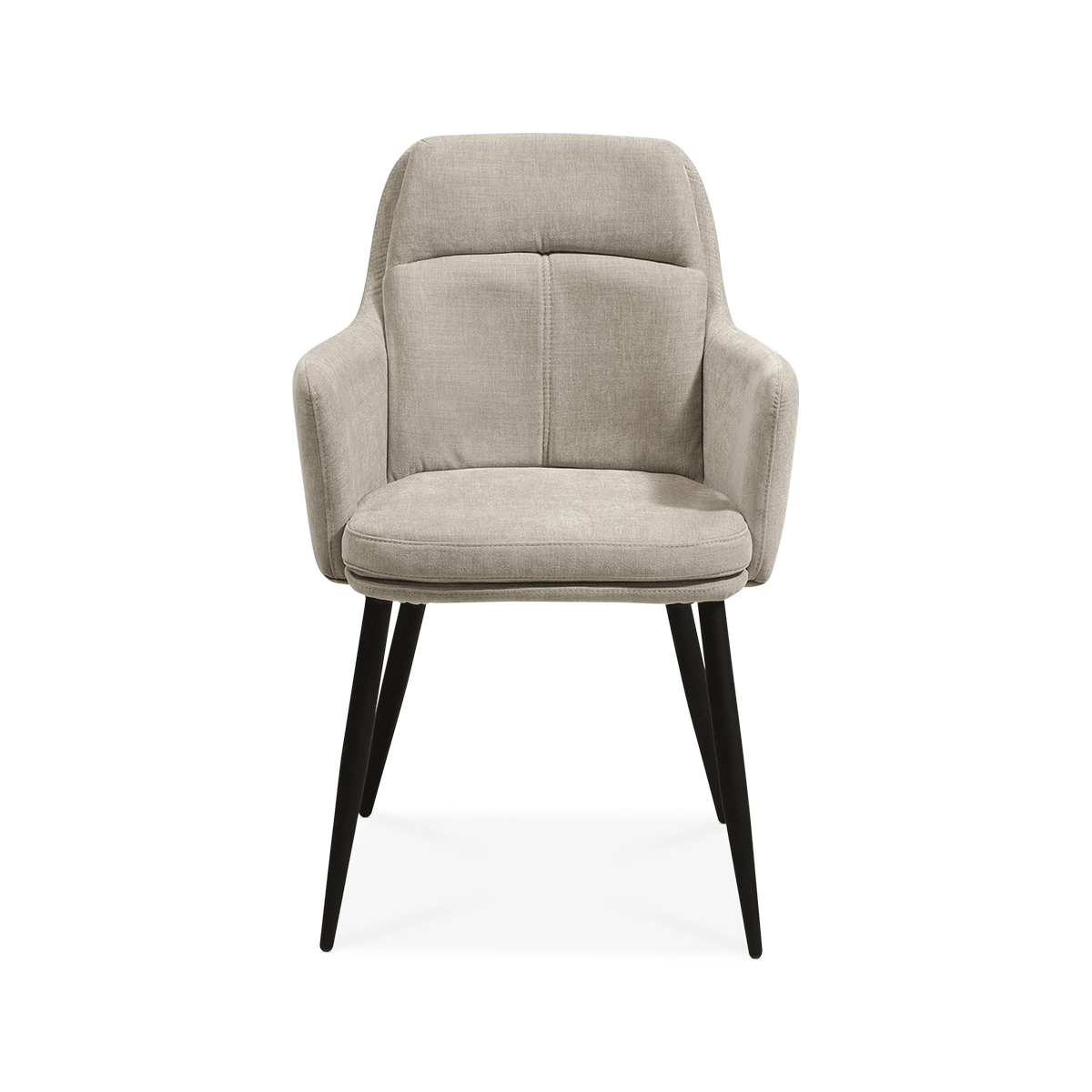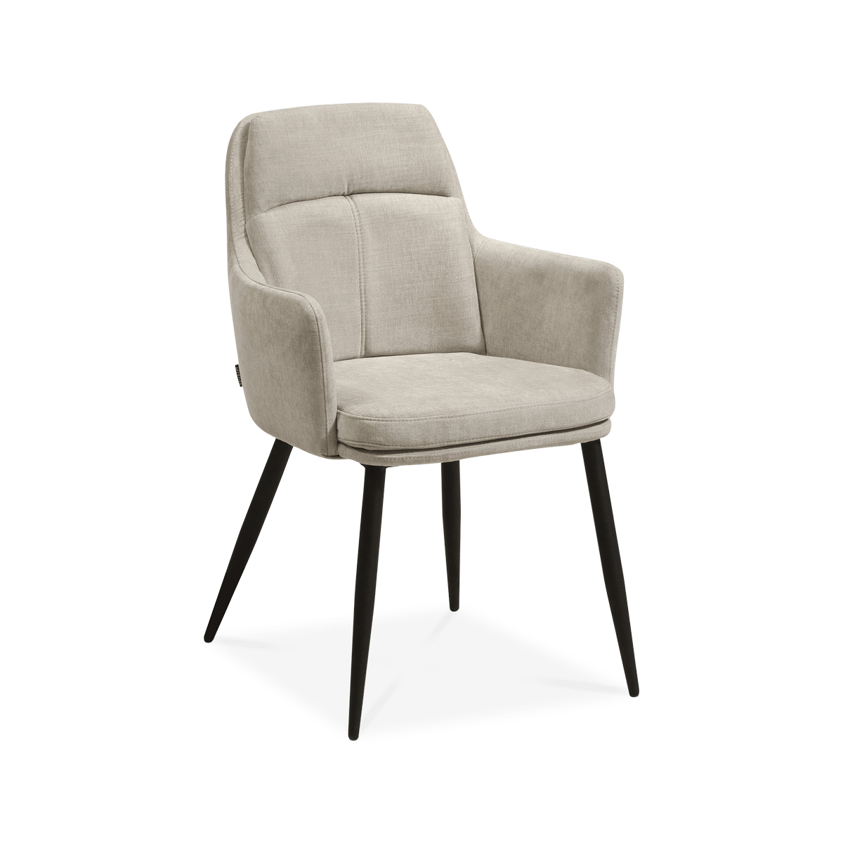 Met zijn zachte bekleding in de kleur Miami Toffee en uitnodigende armleuningen is armstoel SAMMI een stoel waar je graag wat langer in blijft zitten. De zwarte metalen poten geven SAMMI een industriële touch, terwijl het design eerder klassiek is. De zithoogte van 51 cm maakt hem geschikt voor vrijwel elke standaard eettafel, terwijl de wat bredere zitting je net wat meer ruimte en comfort geeft.