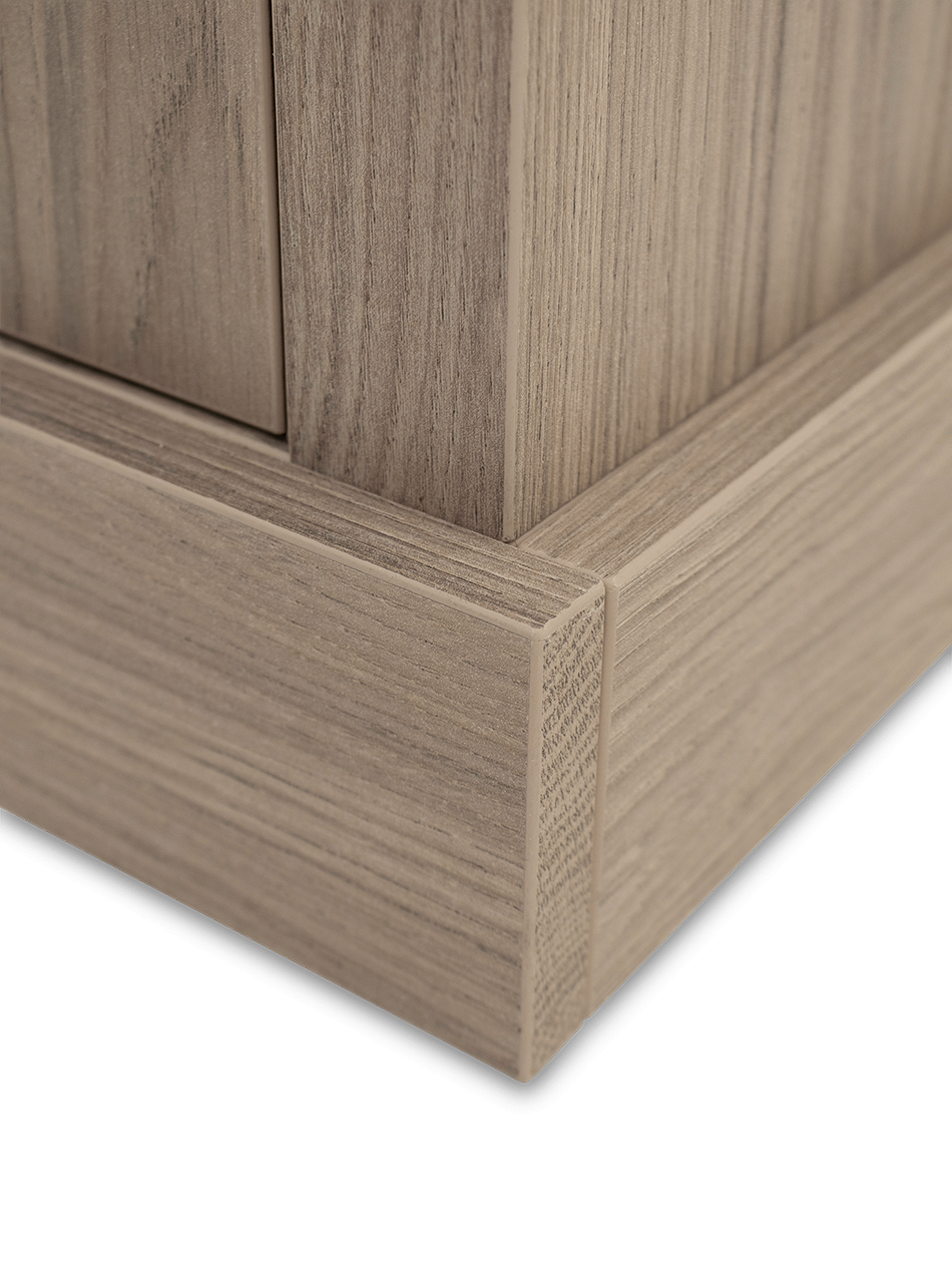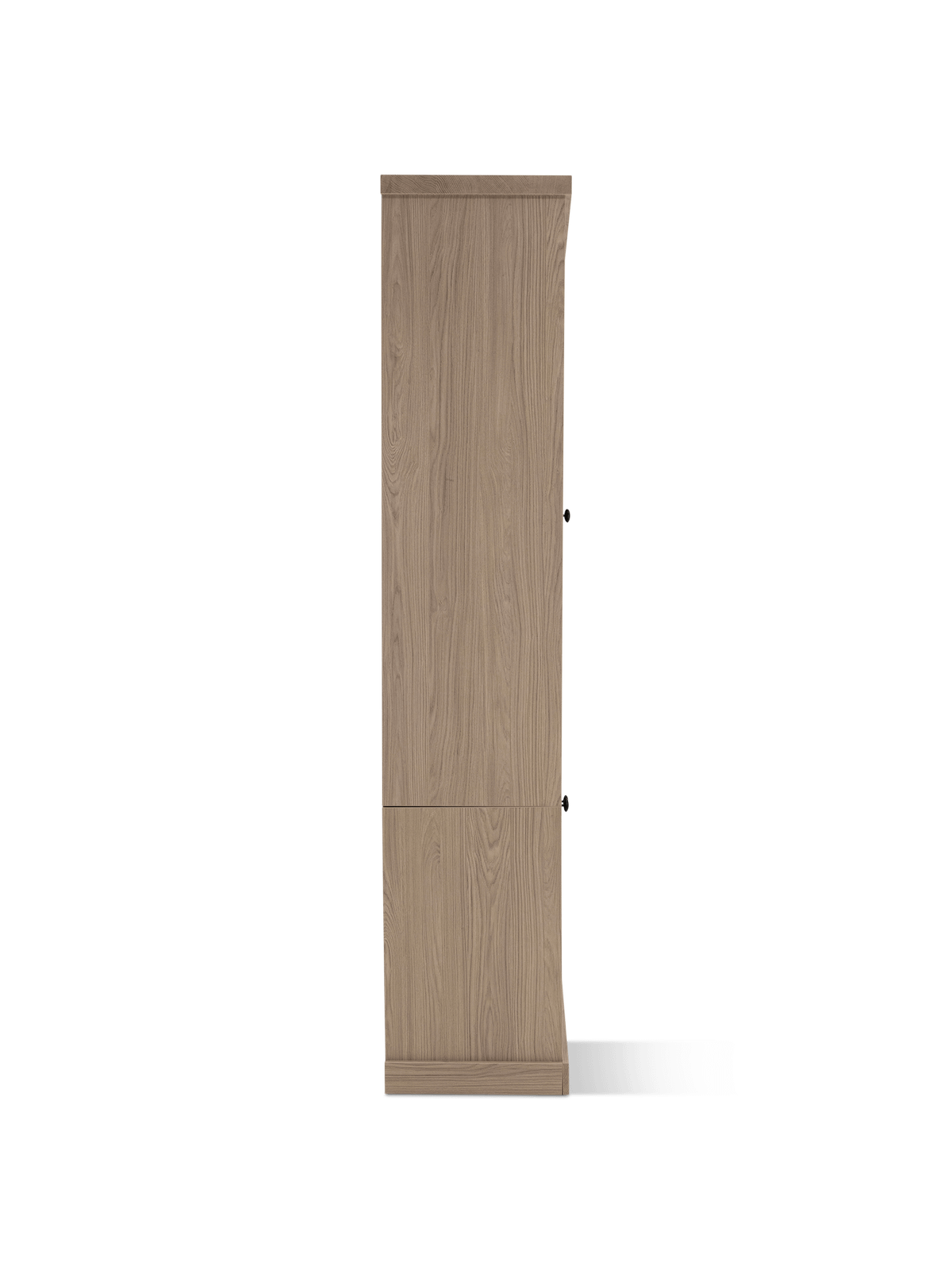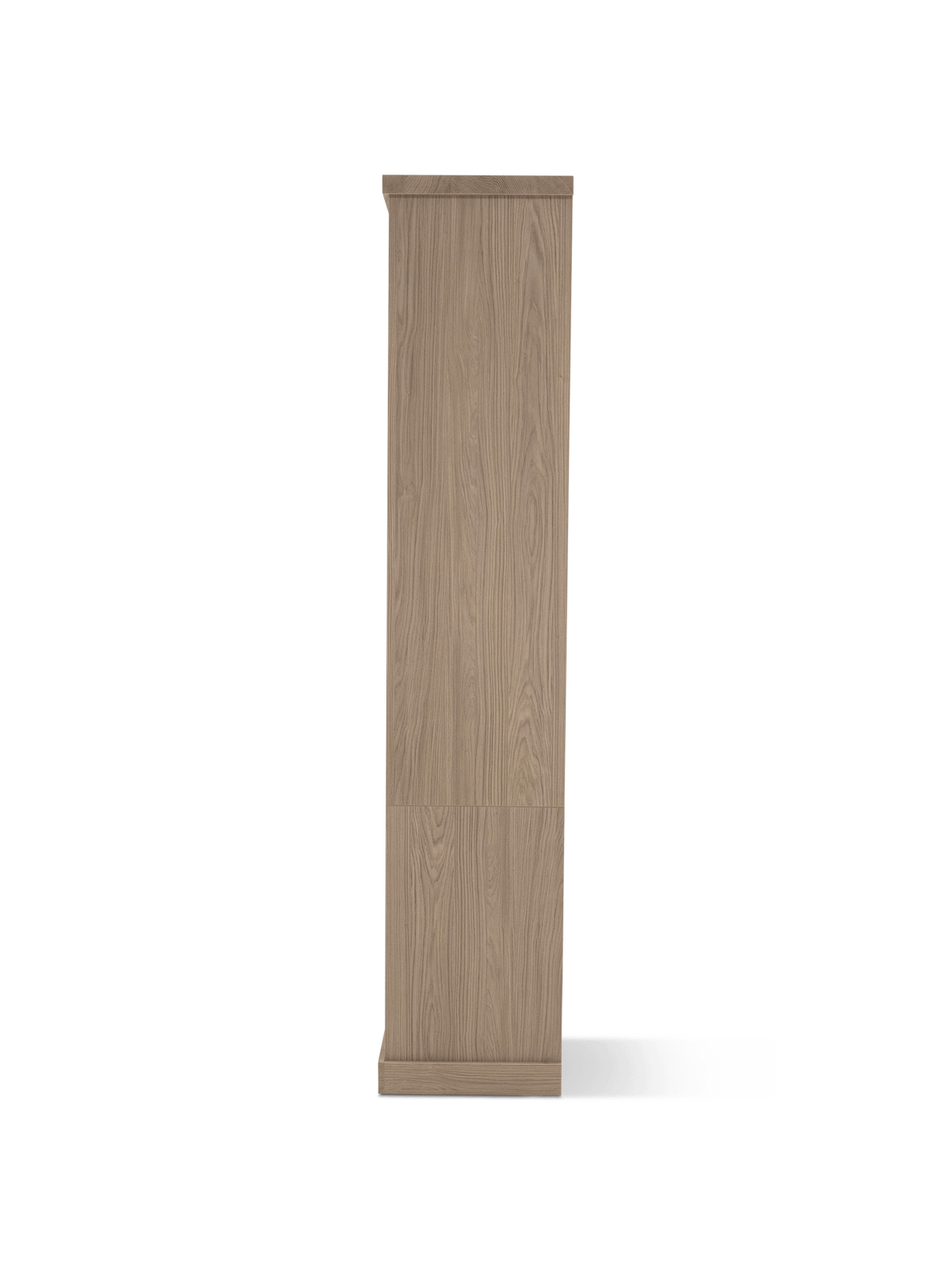 De Rogia vitrinekast combineert warme houttinten met een hedendaags lijnenspel. Uitgevoerd in Lamulux met de natuurlijke kleur Misty Oak, brengt ze een landelijke charme die perfect aansluit bij moderne interieurs.