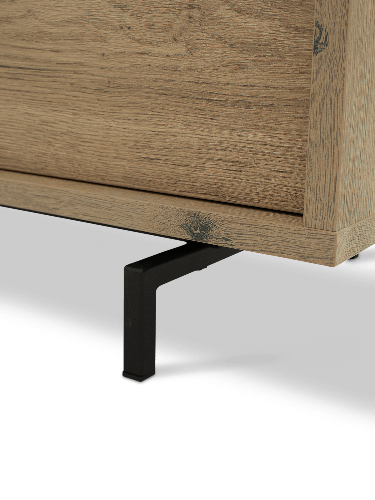 Deze buffetkast is ontworpen als onderdeel van de Halden eetkamercollectie, maar komt ook perfect tot haar recht als losstaand meubel. Combineer ze met de dressoir, barkast of tv-meubel Halden voor een harmonieus interieur in warme houttinten en strak zwart metaal.