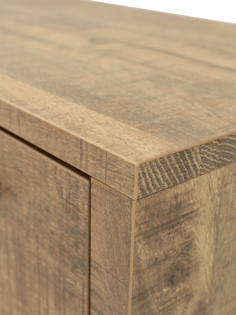 De hoogwaardige Lamulux-afwerking combineert de natuurlijke uitstraling van hout met uitstekende duurzaamheid. Het oppervlak is krasvast, kleurvast en eenvoudig te reinigen, waardoor het meubel moeiteloos mooi blijft, zelfs bij dagelijks gebruik. De warme Mango-tint brengt bovendien een gezellige en uitnodigende sfeer in je woonkamer.