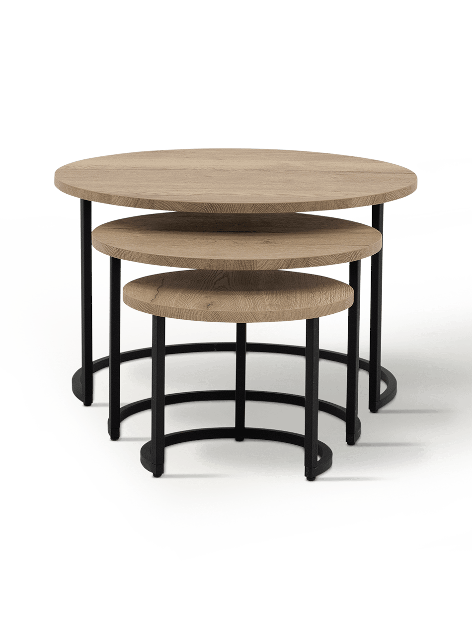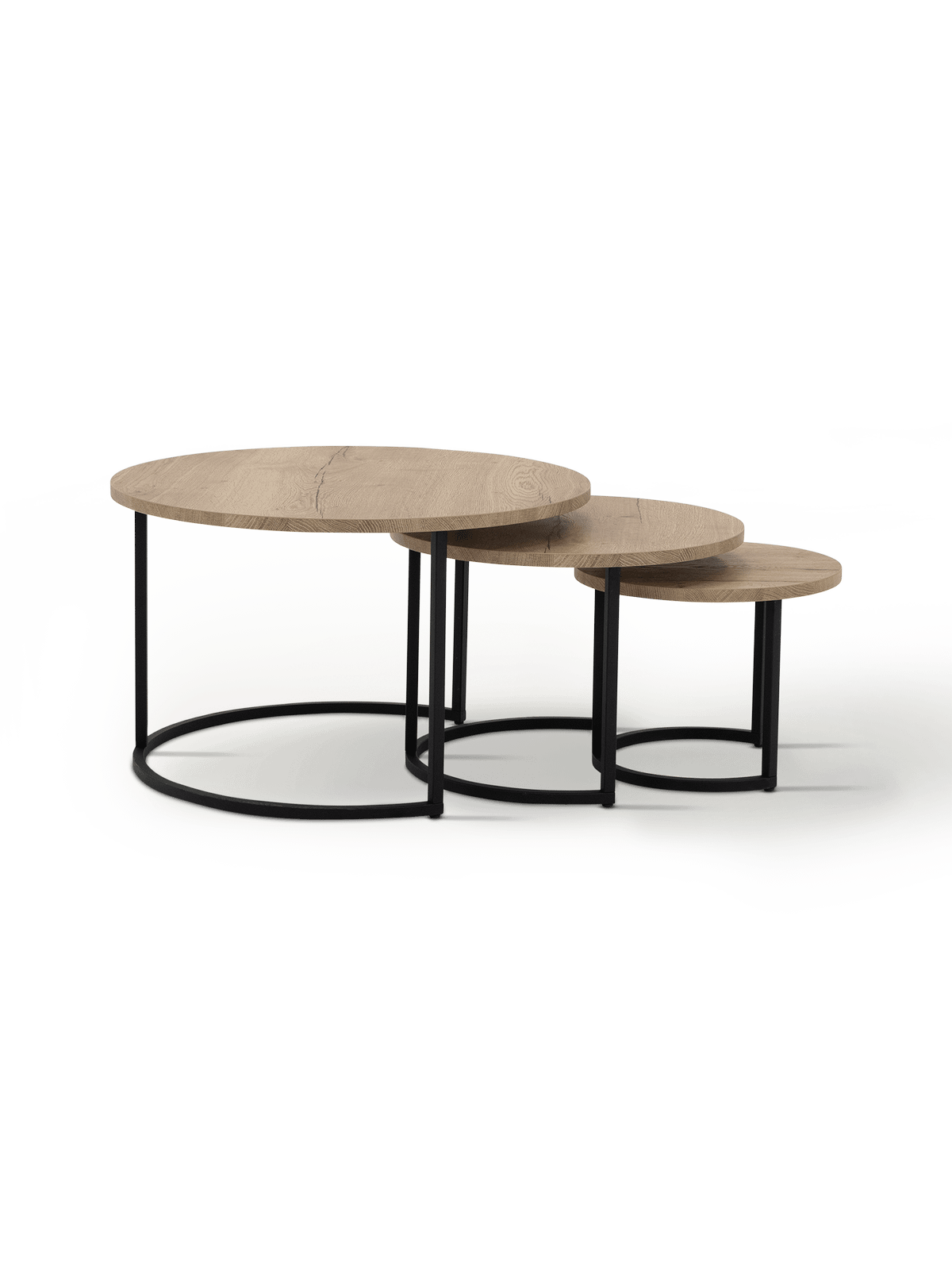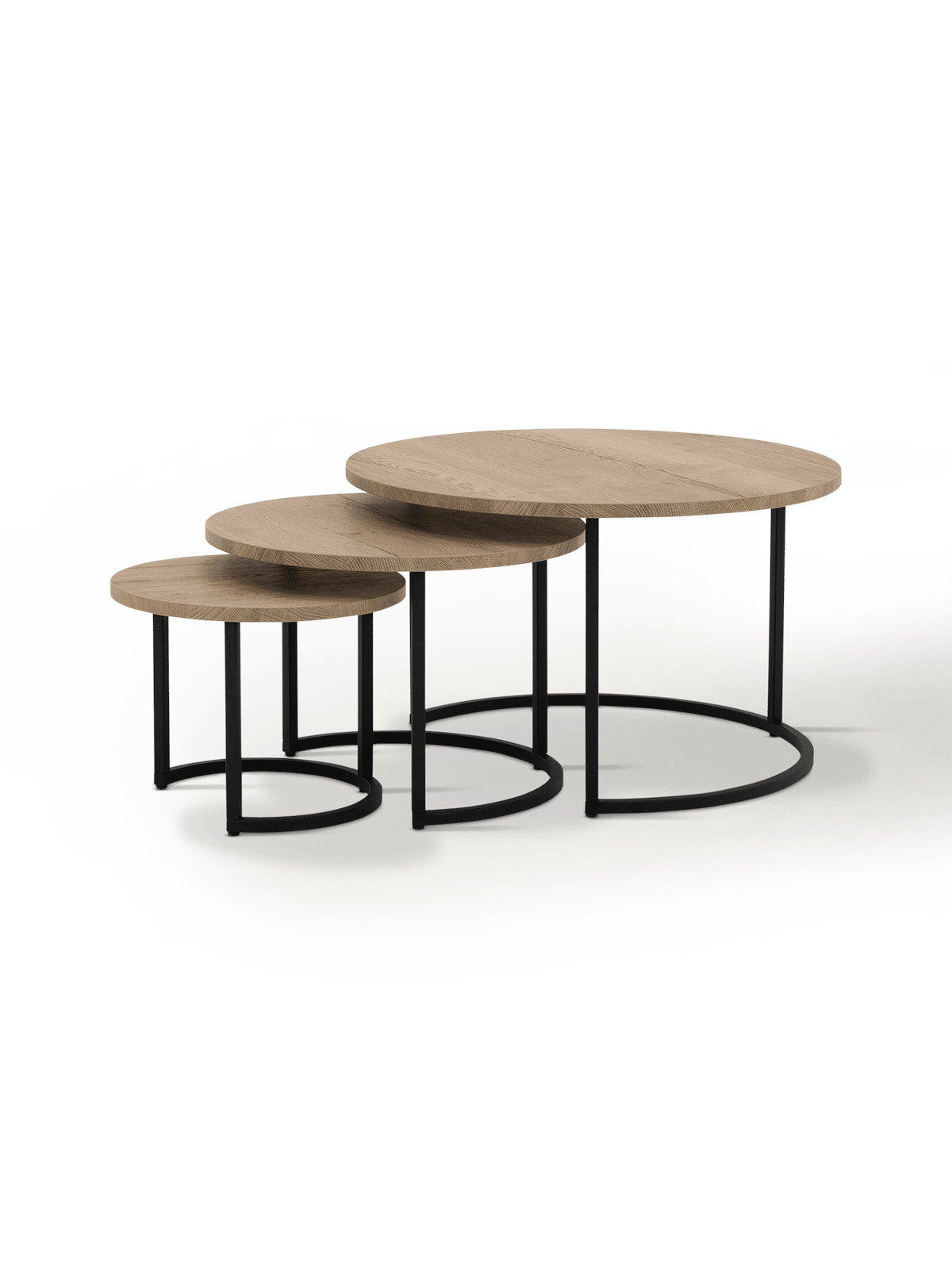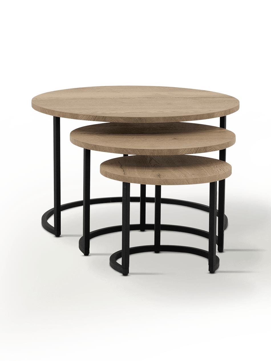 De drie tafels kunnen netjes onder elkaar geschoven worden of los van elkaar worden geplaatst. Ideaal voor wie houdt van praktisch design dat zich aanpast aan elke woonstijl en ruimte. Gebruik ze samen als salontafel, of afzonderlijk als bijzettafeltjes.